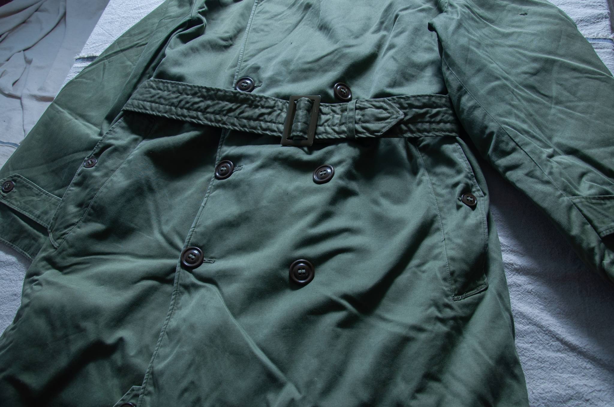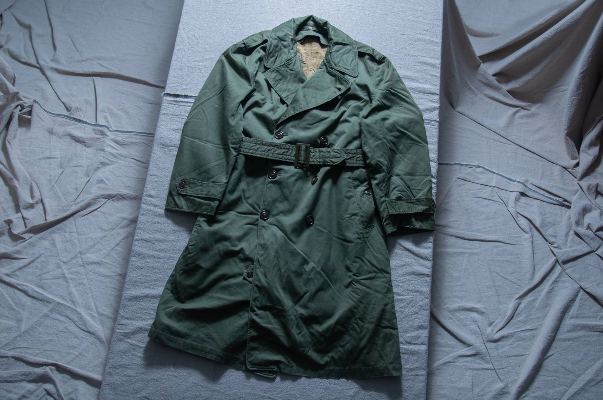 退役品,1950年 美國陸軍公發。有輕微的污漬和小破損,搭配經典的風衣剪裁,更加突顯出個性與歷練。包含狀況良好且可單獨著用的羊毛毯製內裏,增添其搭配的靈活性。