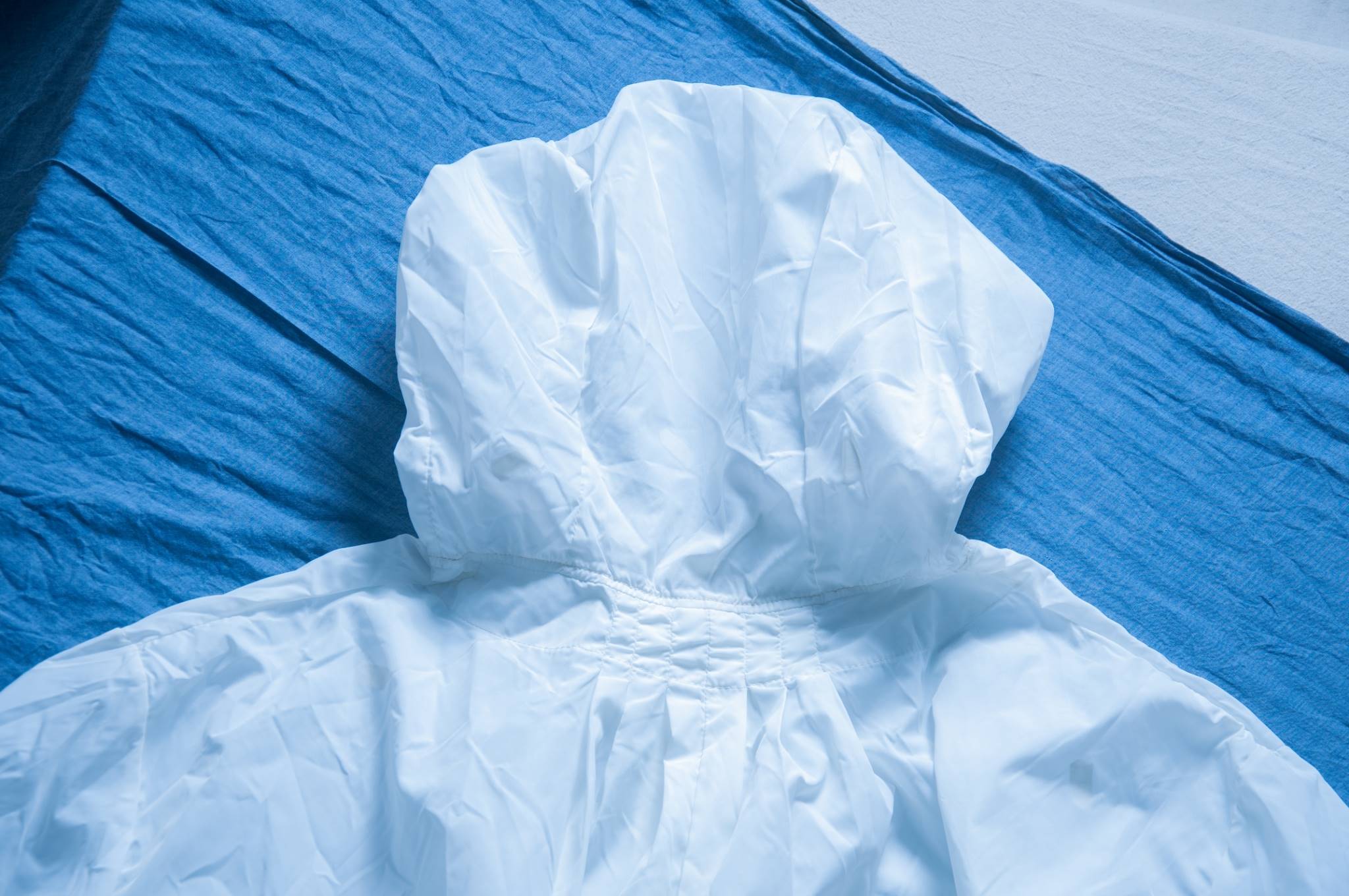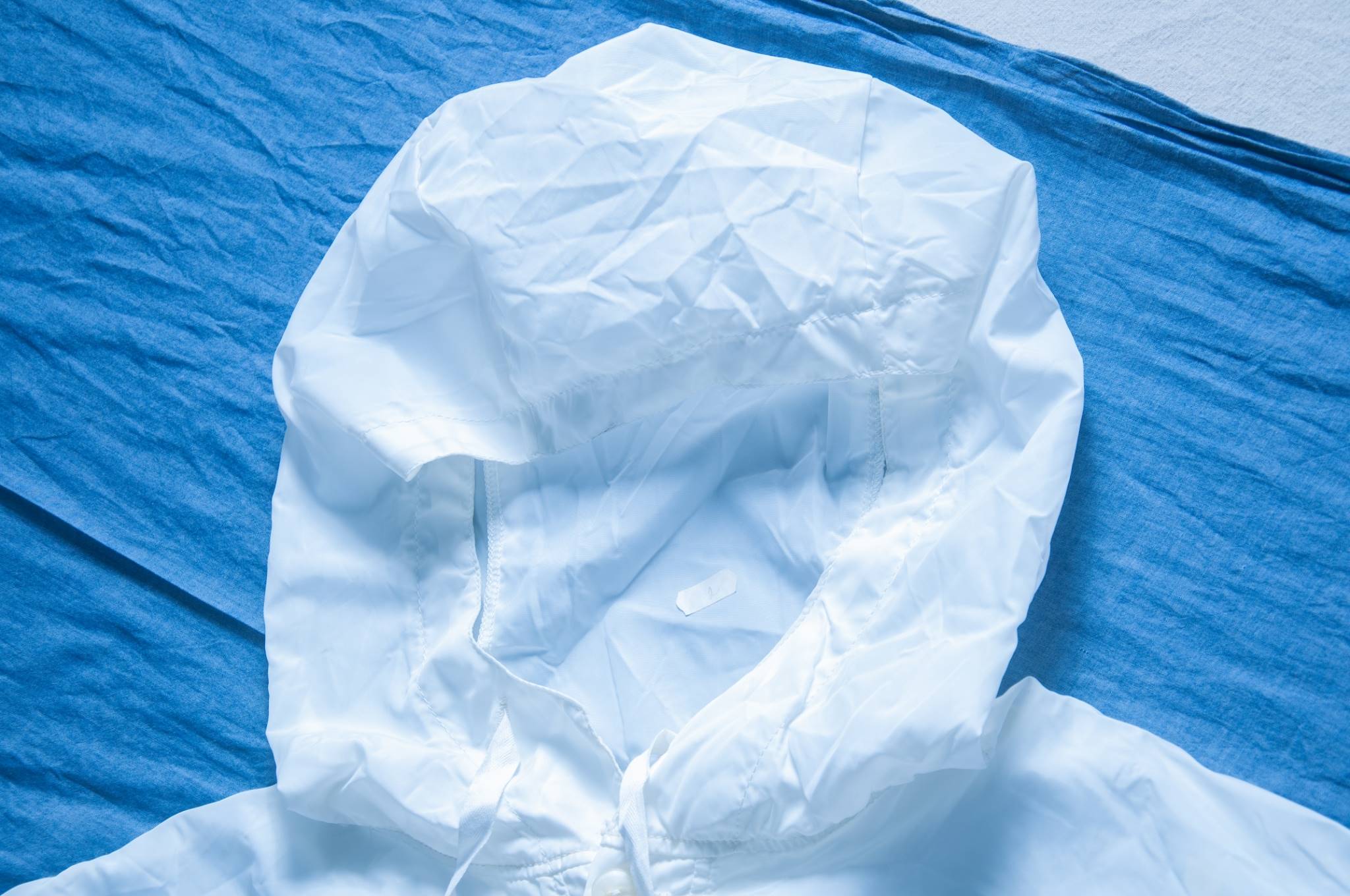 全新庫存 1989年 捷克公發雪地罩衫,留有剪裁標紙,使用防水布料,輕薄可作為雨衣使用。因長年庫存倉儲等因素,少部分有輕微黃漬。