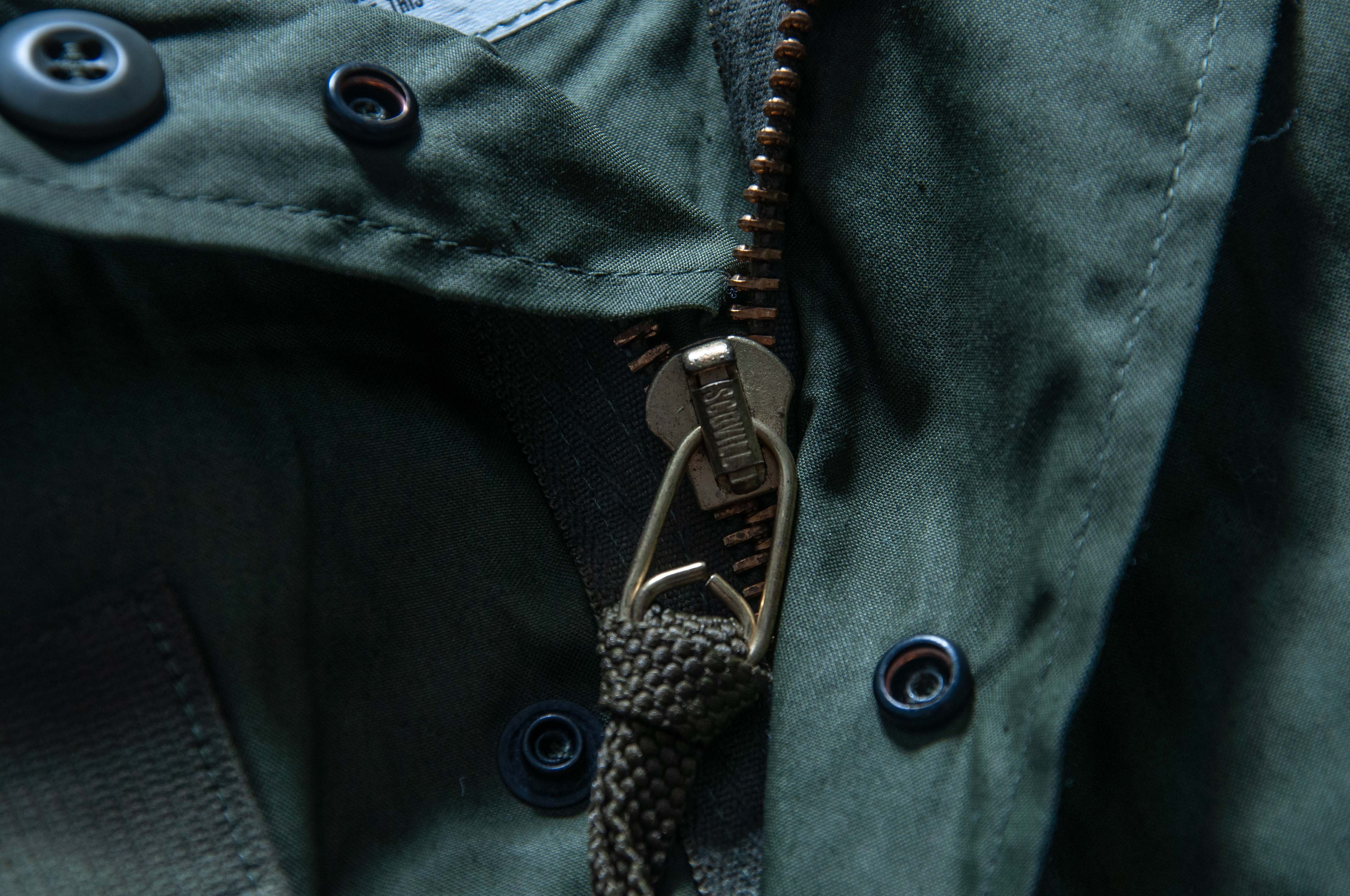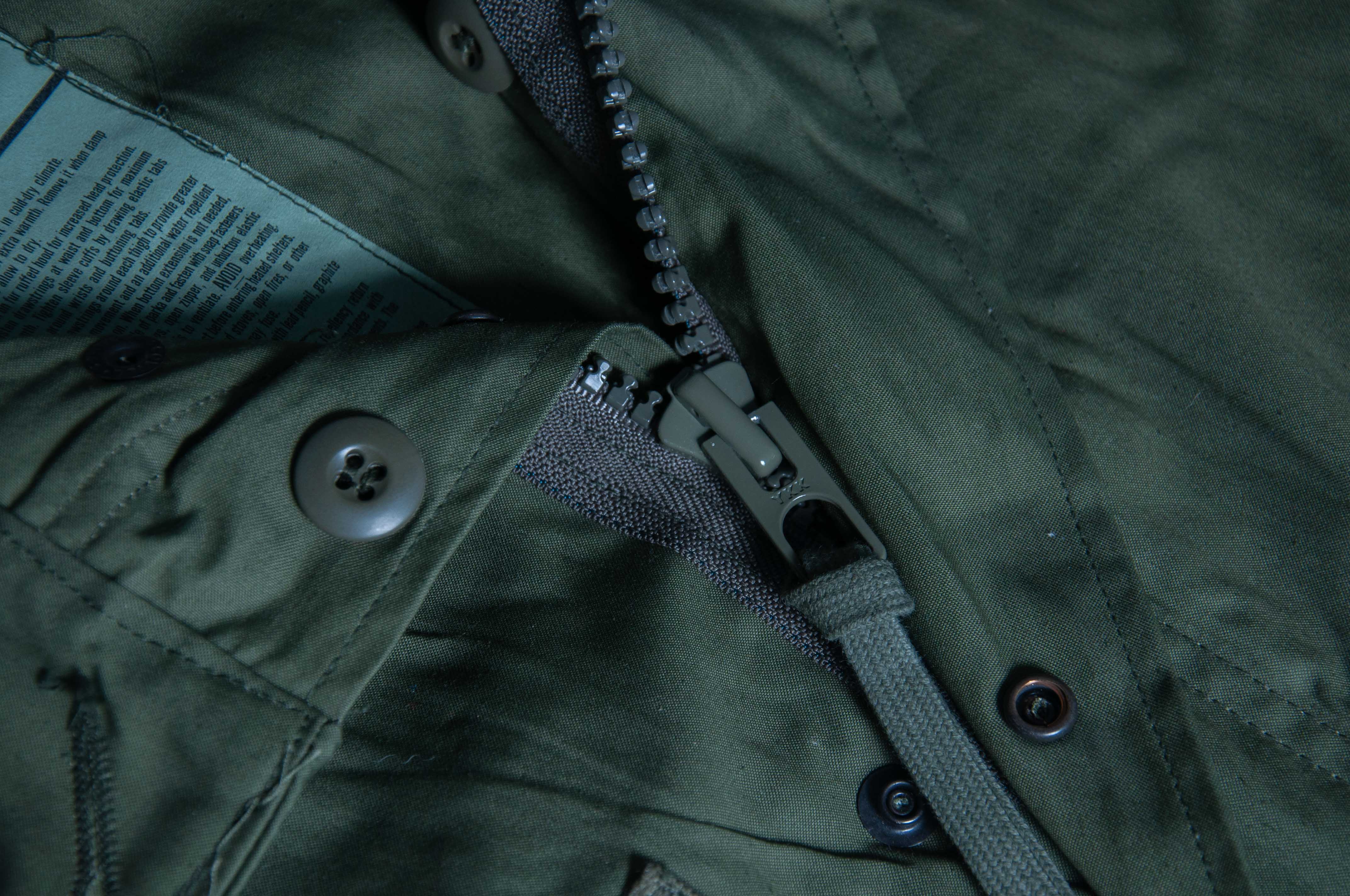 至於 M-65 Parka 的各個尺寸間,在衣長上都是相同的。主要差別就在於肩寬、胸寬及袖長,但也因此造成了大尺寸的 M65 Parka 往往在上身後的效果跟視覺比例上變得怪異。尤其亞洲人在平均身材上較為瘦小,早年國內外許多店家便早已看準此原因,大量的收購原本數量就稀少的 X-Small M65 Parka。而近年來除了 XS 以外,S 號的價格也連帶的開始水漲船高,更別說難度更高的 Deadstock 全新庫存品。因此市面上也出現了大量的復刻及偽物,更有許多店家將原本大尺寸修改成 XS 黃金尺寸的 re size。但要知道,通常任何修改過尺寸的古著可是沒有太多價值的,甚至更不如修改前的價值。