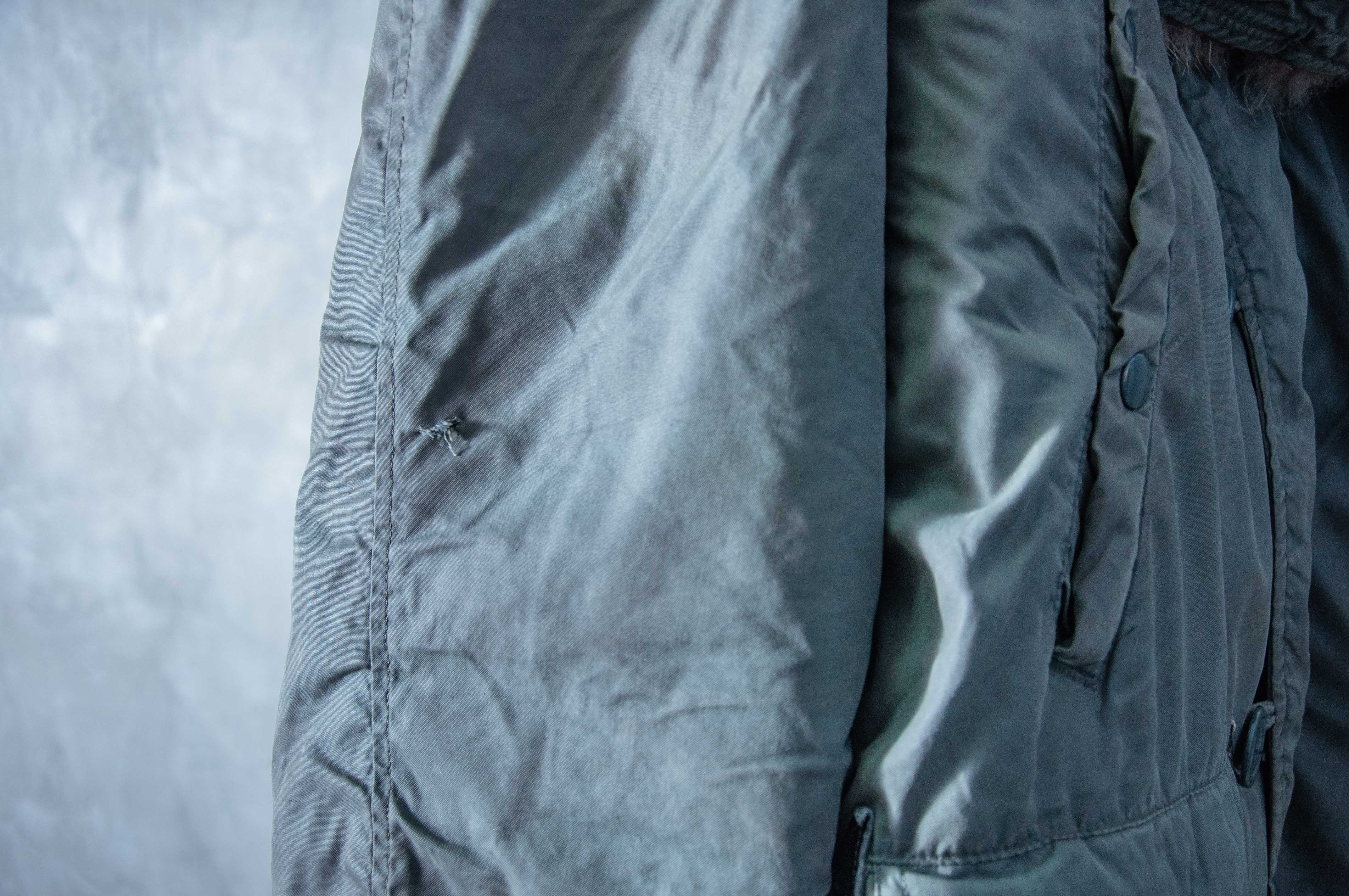 Very stylish 1971 Skyline Clothing Corporation N-3B extreme cold weather flying parka. In good used condition. Very beautiful real wolf fur trim. Does have some stains and small holes. Using Scovill zipper and both working well. Two zipper tooth lost, but doesn’t affect working. All buttons present. A great piece of Vietnam war collection.