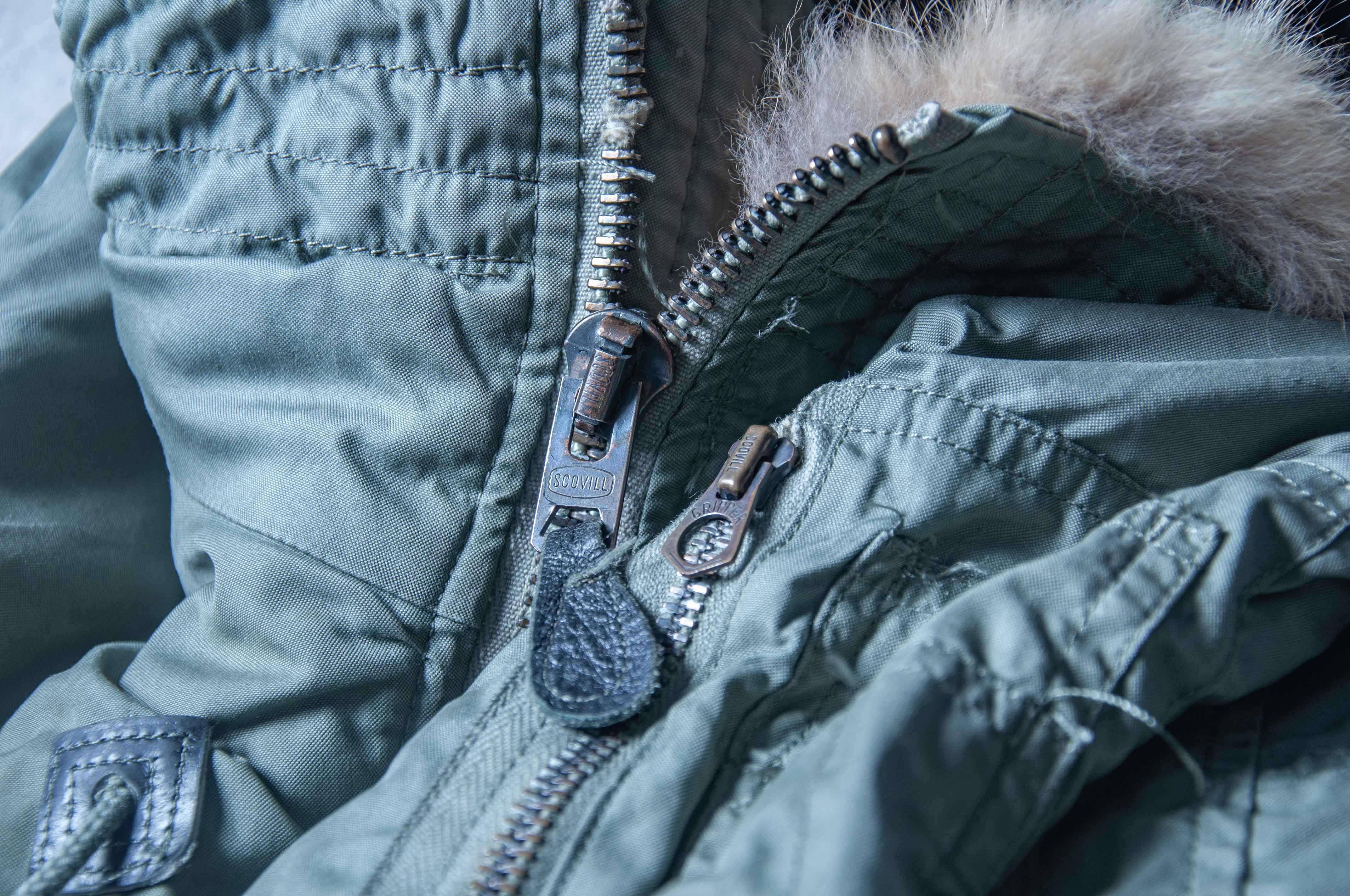 1971年 Skyline Clothing 承製的美國空軍公發 N3B 連帽飛行夾克。 帽沿狼毛蓬鬆漂亮,所有鈕扣及螺紋皆完整無缺。拉鍊使用耐用的 Scovill 銅製拉鍊,主拉鍊上方拉齒有兩顆遺失,但不影響使用,拉鍊依然可以完整拉至最上緣。公發退役品有士兵使用後的污漬與小破洞,非常經典及實穿的越戰收藏。