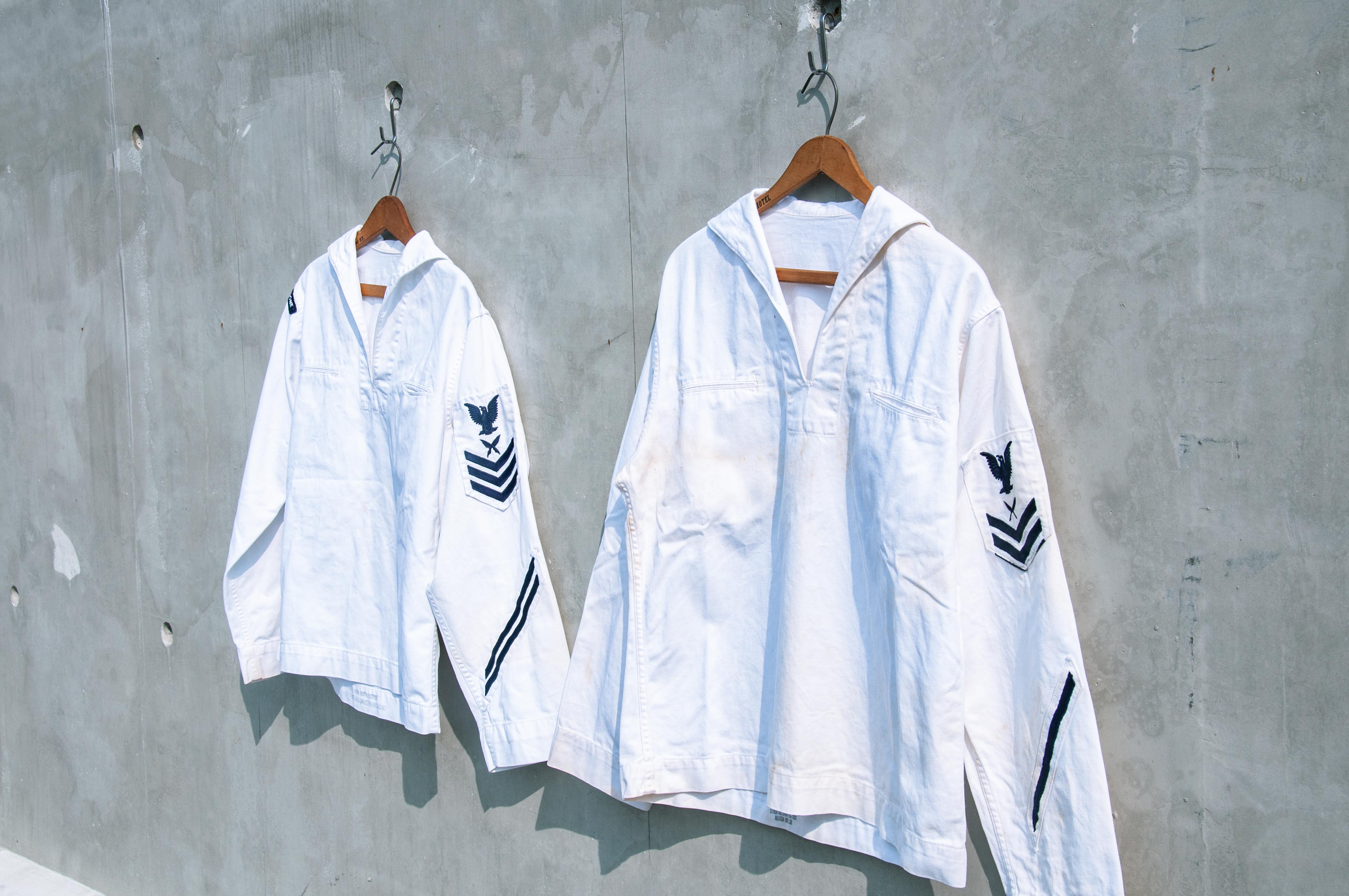 這次所販售的 60 年代 美國海軍公發的水手服皆為退役原版古着,全部皆以清洗完畢。整體留有當年使用及保存的痕跡和污漬,以將近 60 年的古董來說保存的狀況十分的良好( 白色的衣物在保存上更加困難 )。單品經過歲月淬鍊出的個性及風貌是新品再怎麼加工仿製都難以模仿的。而對於重度的古着痴而言,保有一些使用後的污漬與痕跡比起潔白如新的新品更有著致命的吸引力。