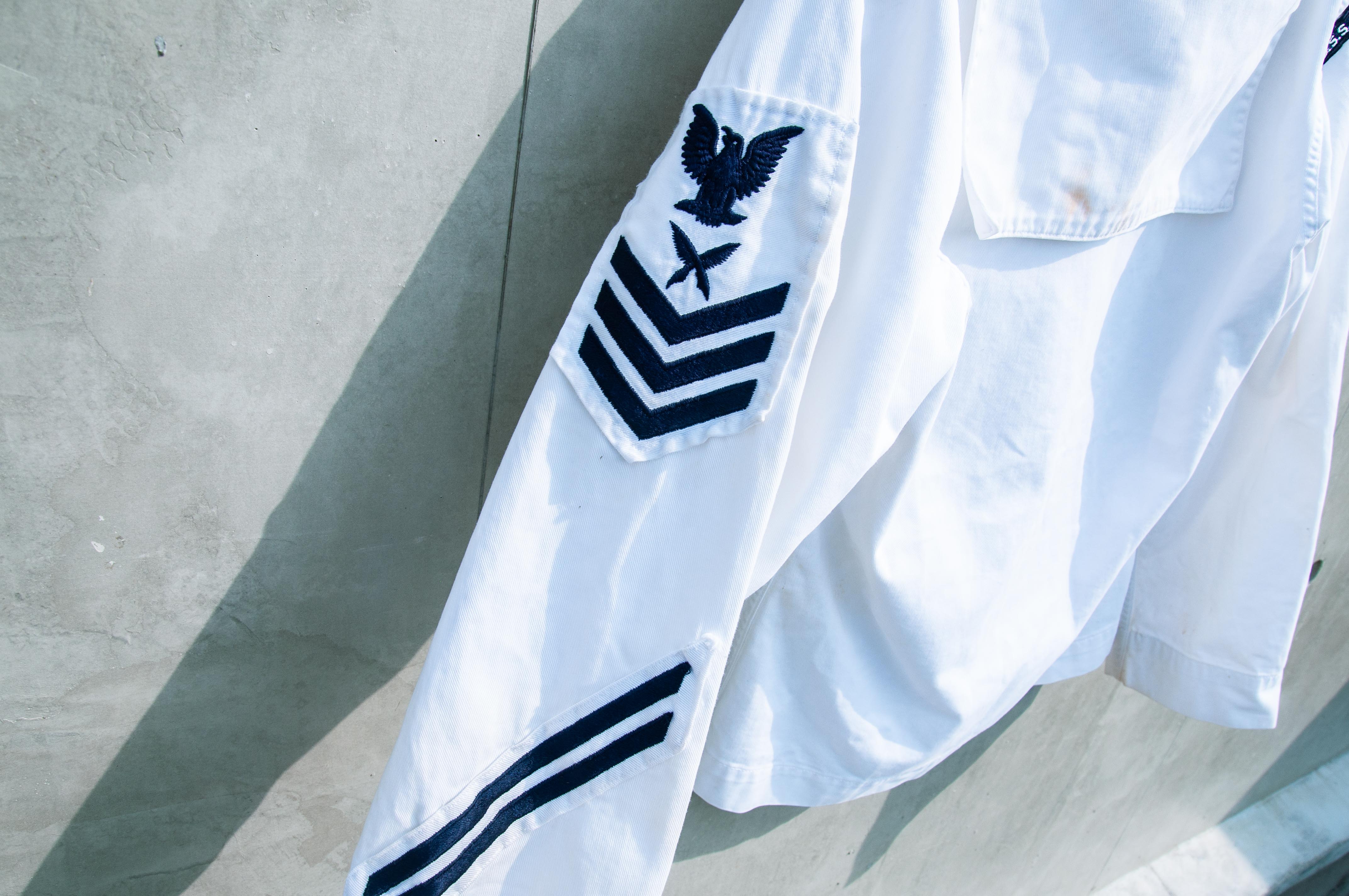 60年代 美國海軍公發水手服上衣,為夏季配給給士兵的常服( Summer White Service )上身。