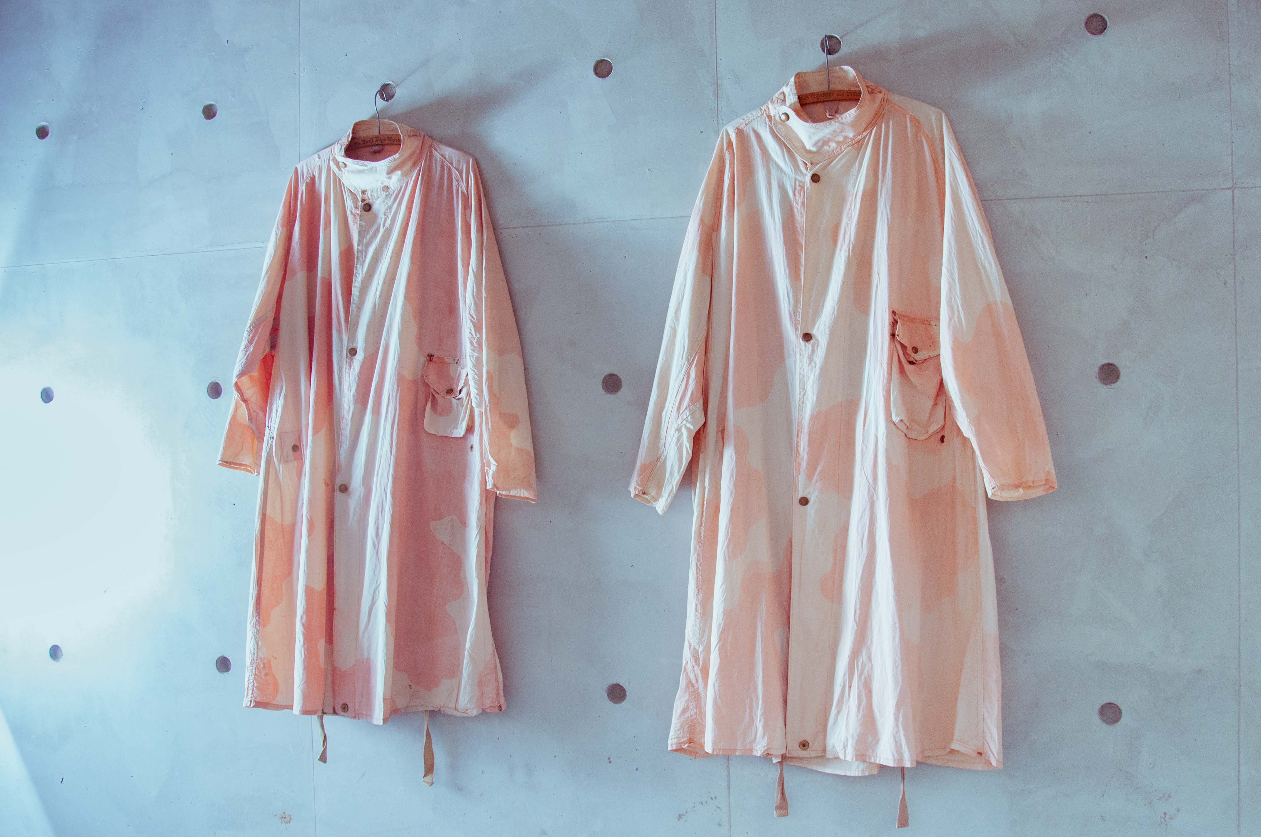 整件罩衫使用非常輕薄的棉質面料製作而成。事實上在出廠製作完成時,為了使他具備有防水及抗化學毒氣的機能,所有罩衫都經過了亞麻籽油的浸潤處理,因此顏色呈現為更加接近橄欖與深棕色,而目前我們所見到最醒目也是這件長罩衫最大特色的特殊粉紅色迷彩,其實是將亞麻籽油洗去之後所呈現的顏色。而關於這件英軍粉紅迷彩罩衫還有些有趣的小故事,有空會再找時間補充分享。