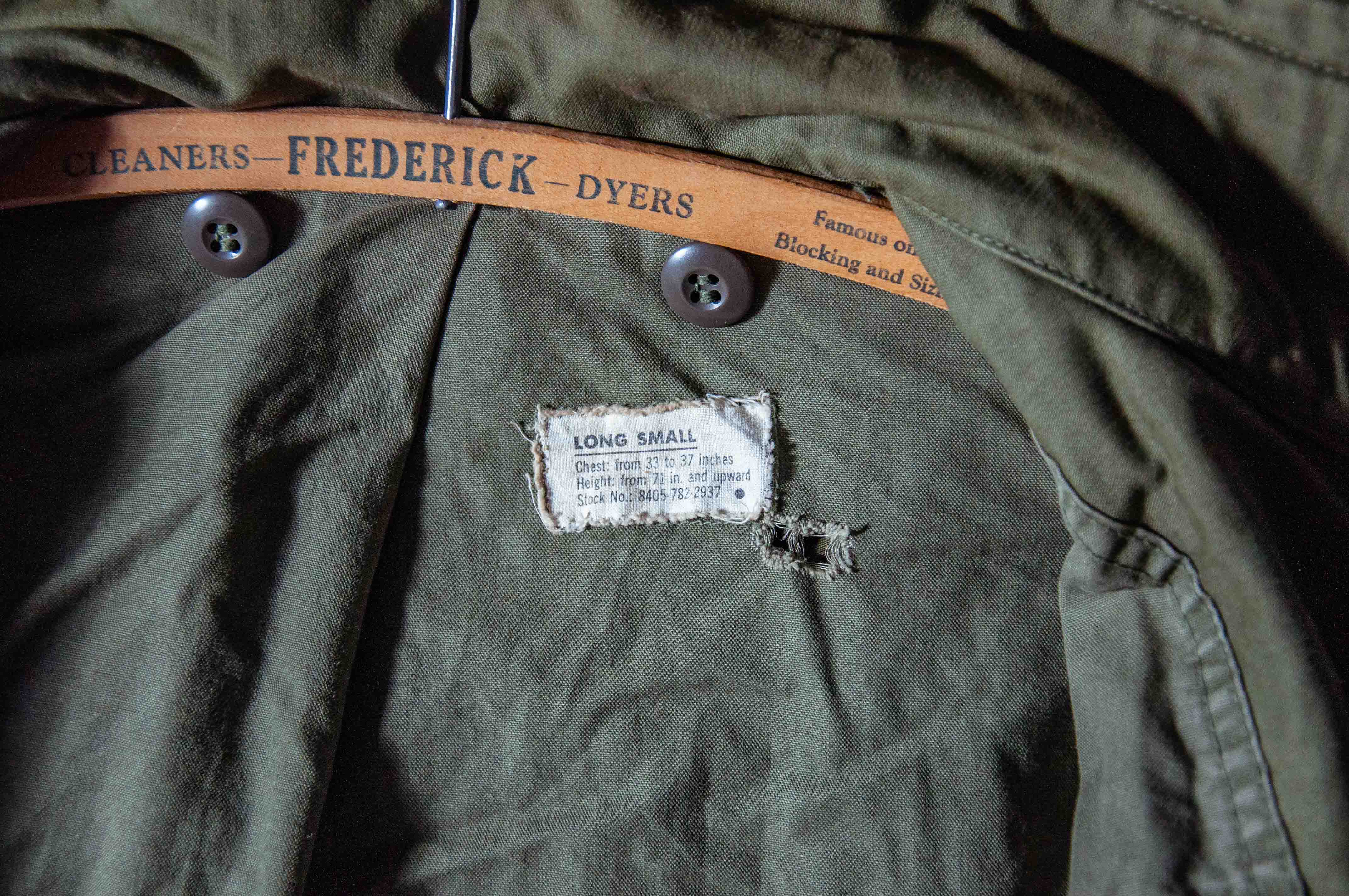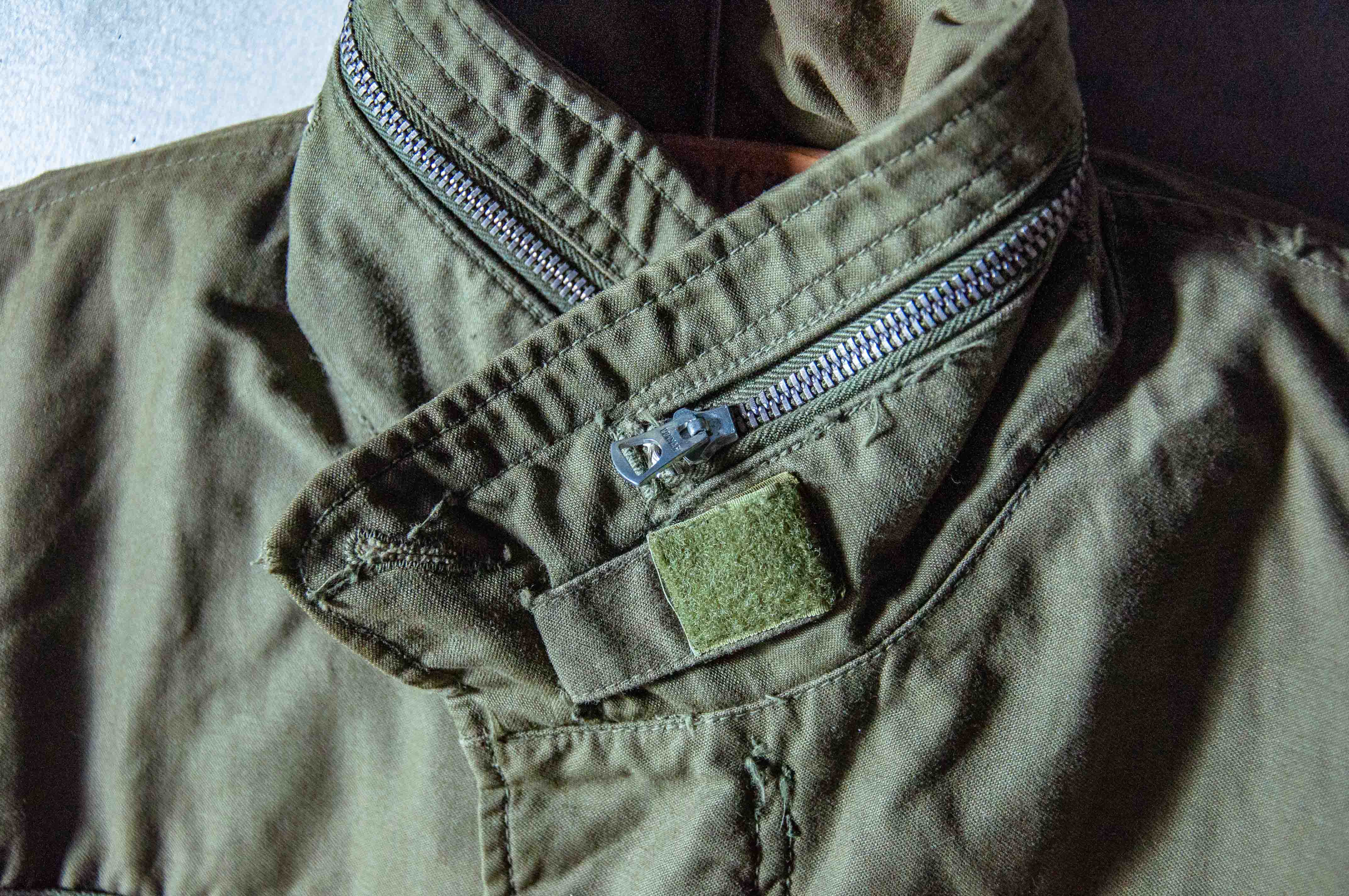 本次所販售的為合約年份 1965 年之相當稀有的 M-65 野戰夾克 1st Pattern 退役品,有著服役使用過後的一些痕跡,但顏色還算深,所有五金及鈕扣皆無遺失,使用的鋁製拉鍊狀況良好,功能正常。以距今 50 幾年的越戰軍品而言,算是非常好的品項了,且胸口分別縫有陸軍軍種標及士兵名條,手臂上則縫有階級及單位布章。