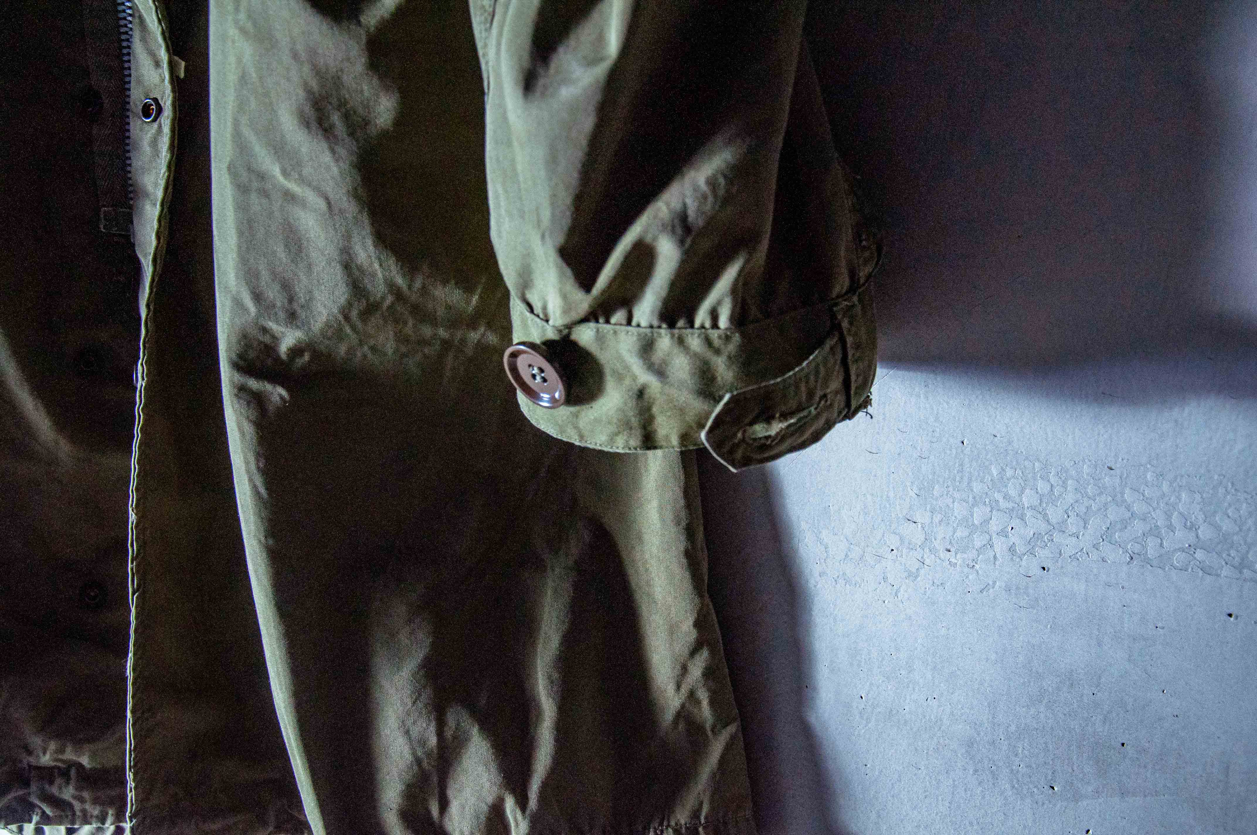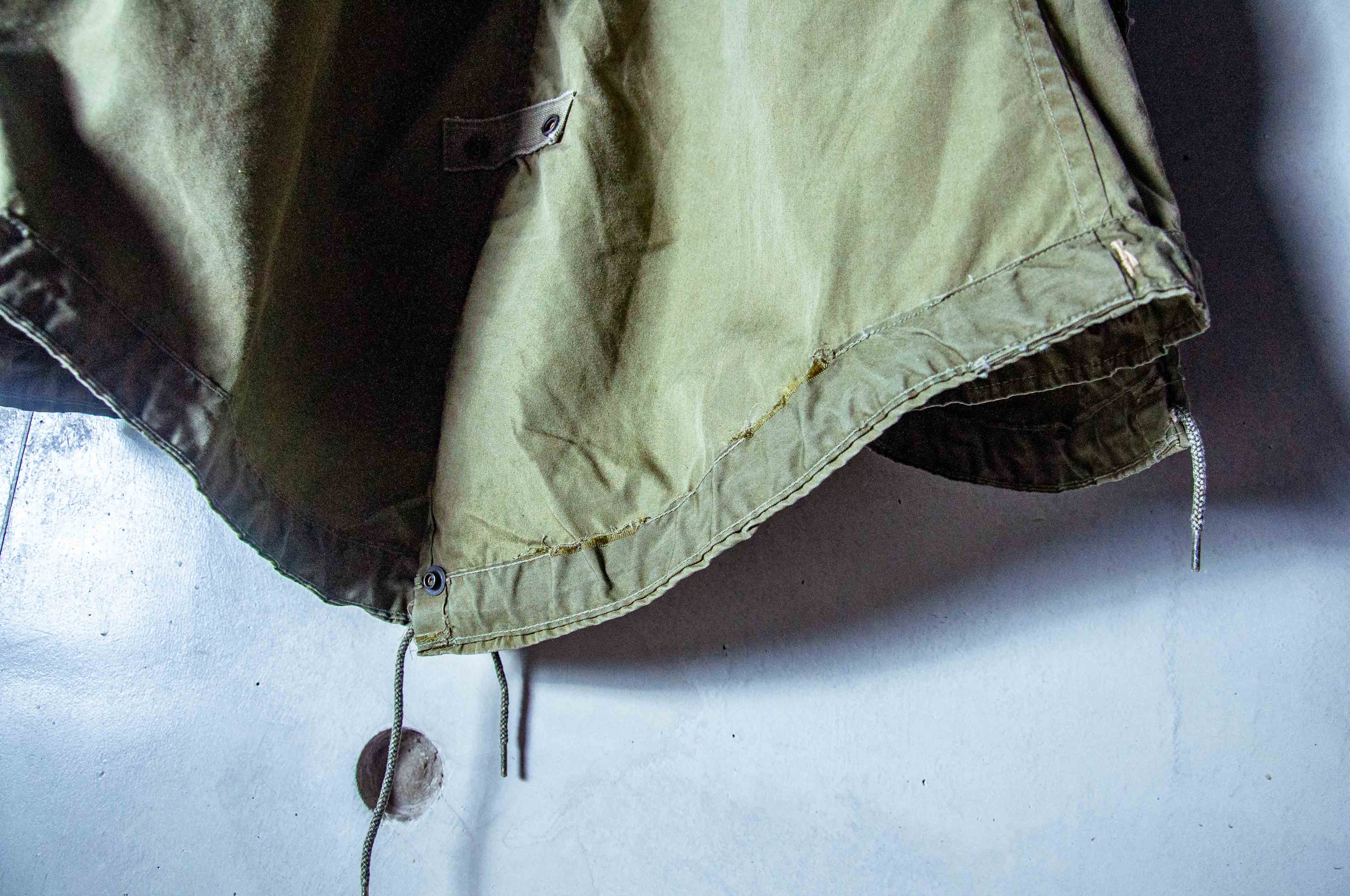 本次所販售的為合約年份 1953 年所製造的 M-51 魚尾大衣 3rd Pattern 退役品,尺寸為極少的小尺寸 S 號。有著服役使用過後的一些痕跡,所有五金及鈕扣皆無遺失,內側的腰間及下襬調節抽繩處有部分的脫線,但不影響使用,Conmar 主拉鍊狀況良好,功能正常。以距今將近 70 幾年的韓戰軍品而言,是非常不錯的品項。