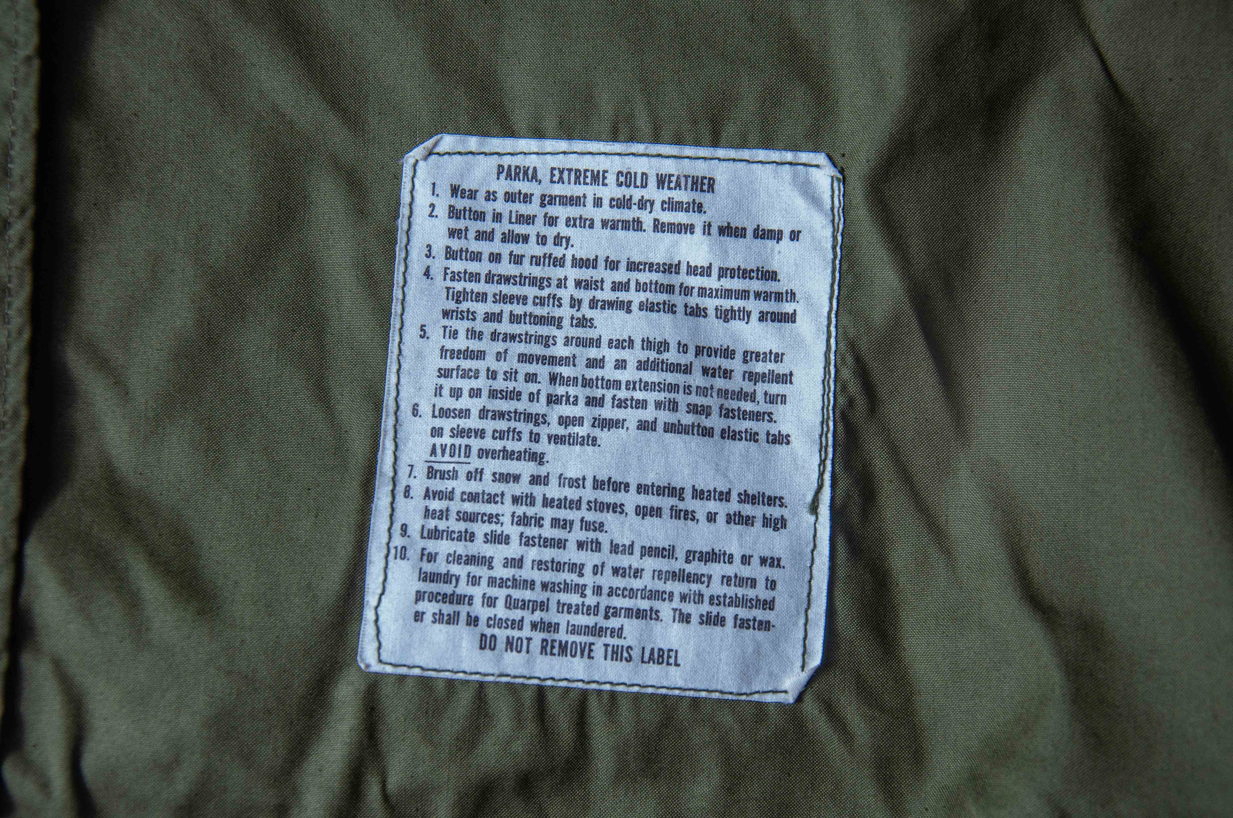至於 M-65 Parka 的各個尺寸間,在衣長上都是相同的。主要差別就在於肩寬、胸寬及袖長,但也因此造成了大尺寸的 M65 Parka 往往在上身後的效果跟視覺比例上變得怪異。尤其亞洲人在平均身材上較為瘦小,早年國內外許多店家便早已看準此原因,大量的收購原本數量就稀少的 X-Small M65 Parka。而近年來除了 XS 以外,S 號的價格也連帶的開始水漲船高,更別說難度更高的 Deadstock 全新庫存品。因此市面上也出現了大量的復刻及偽物,更有許多店家將原本大尺寸修改成黃金尺寸的 re size。但要知道,通常任何修改過尺寸的古著可是沒有太多價值的,甚至更不如修改前的價值。