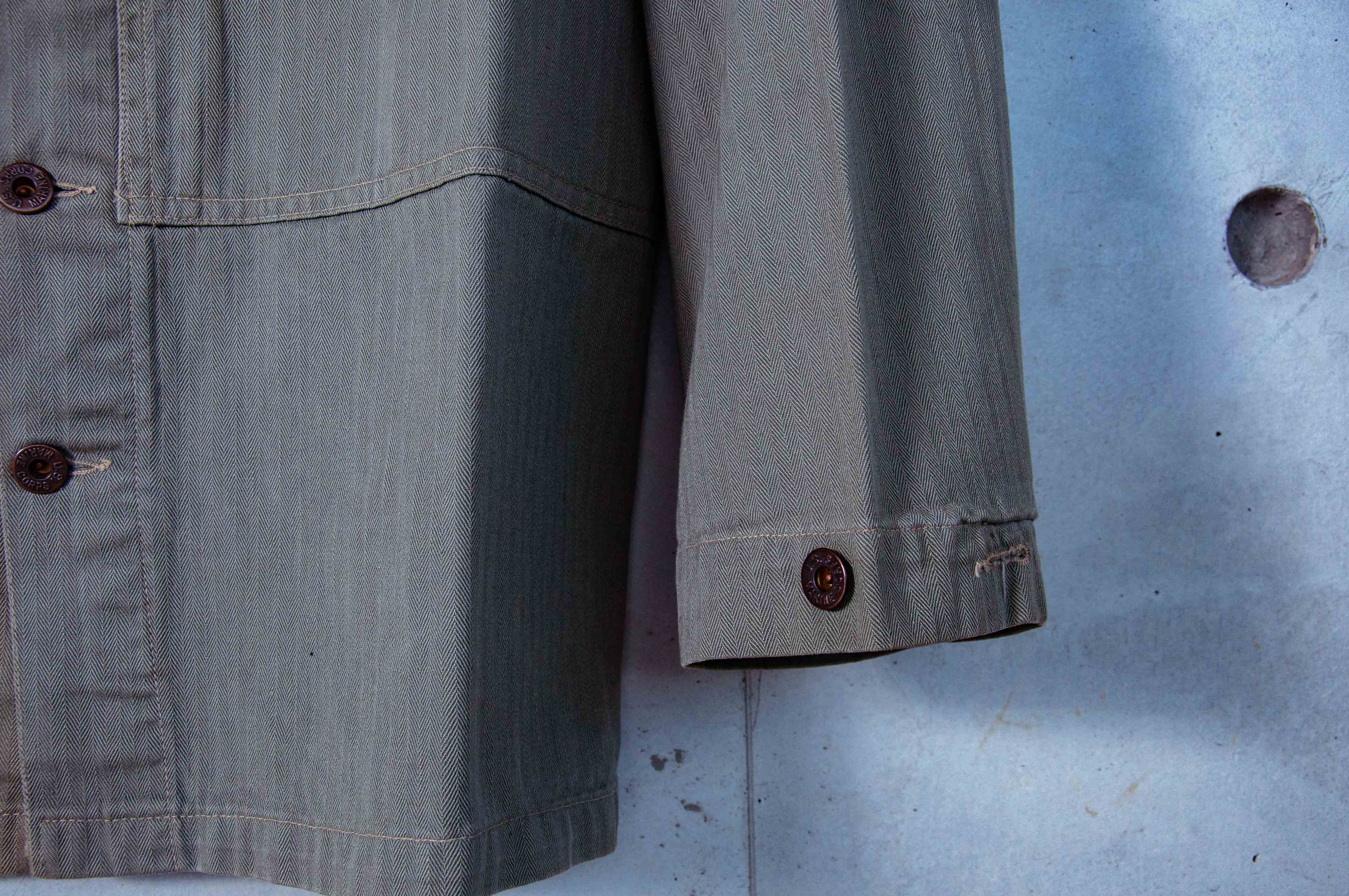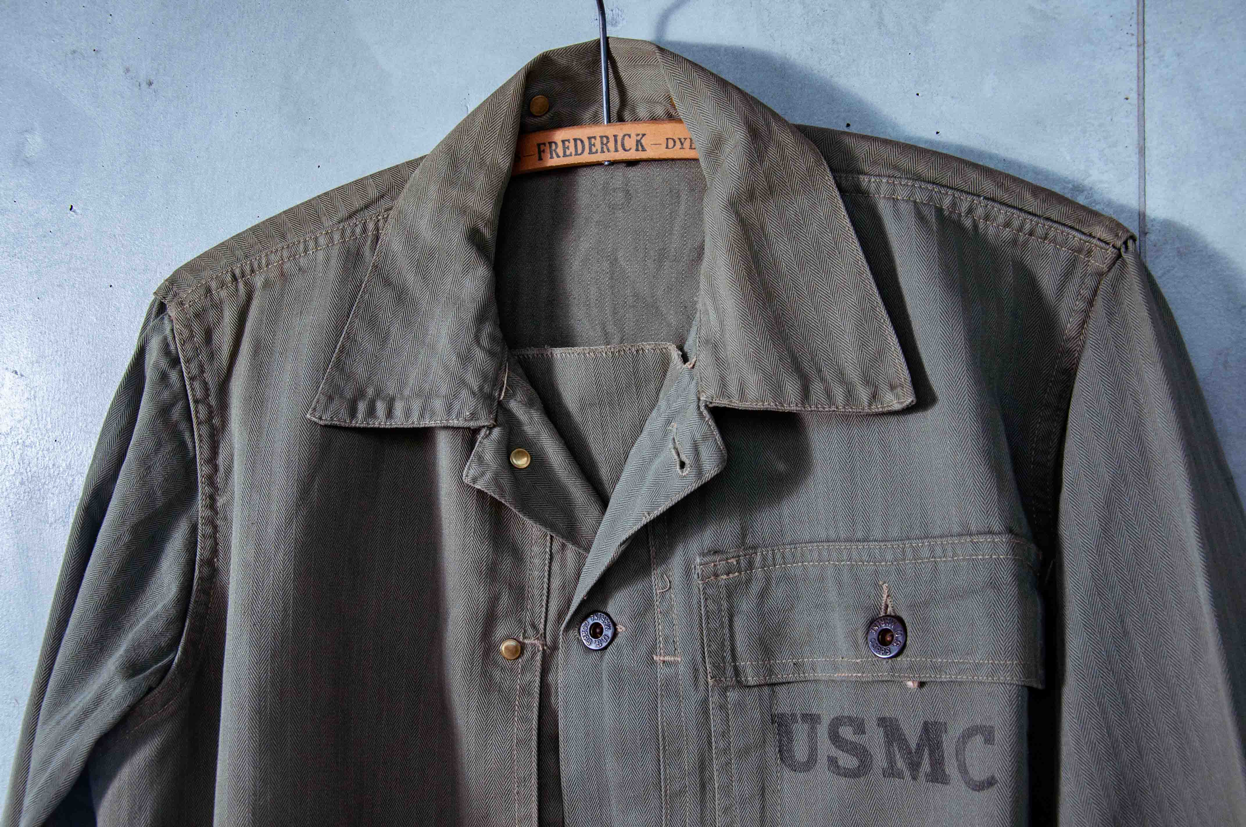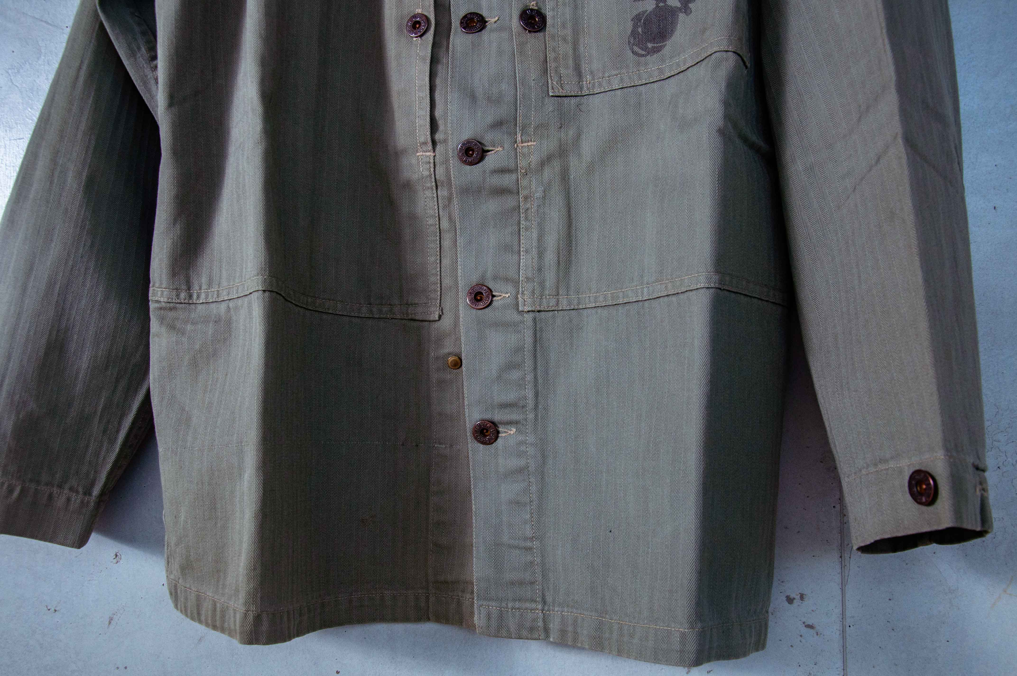 原版古着 40年代 二戰美國海軍陸戰隊公發 USMC HBT 人字紋布料 P44 野戰襯衫 稀有異色拼接 ( C款 )