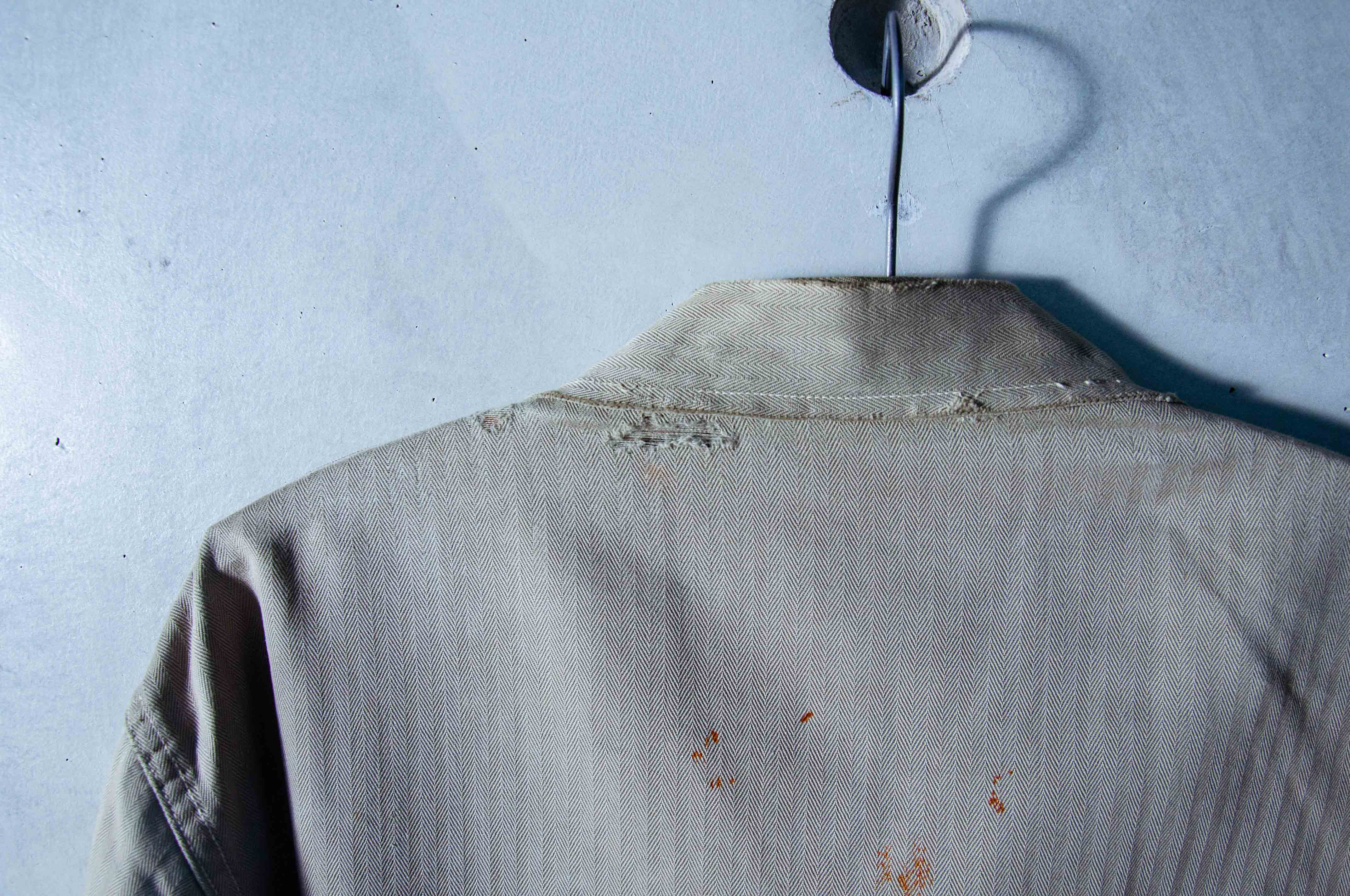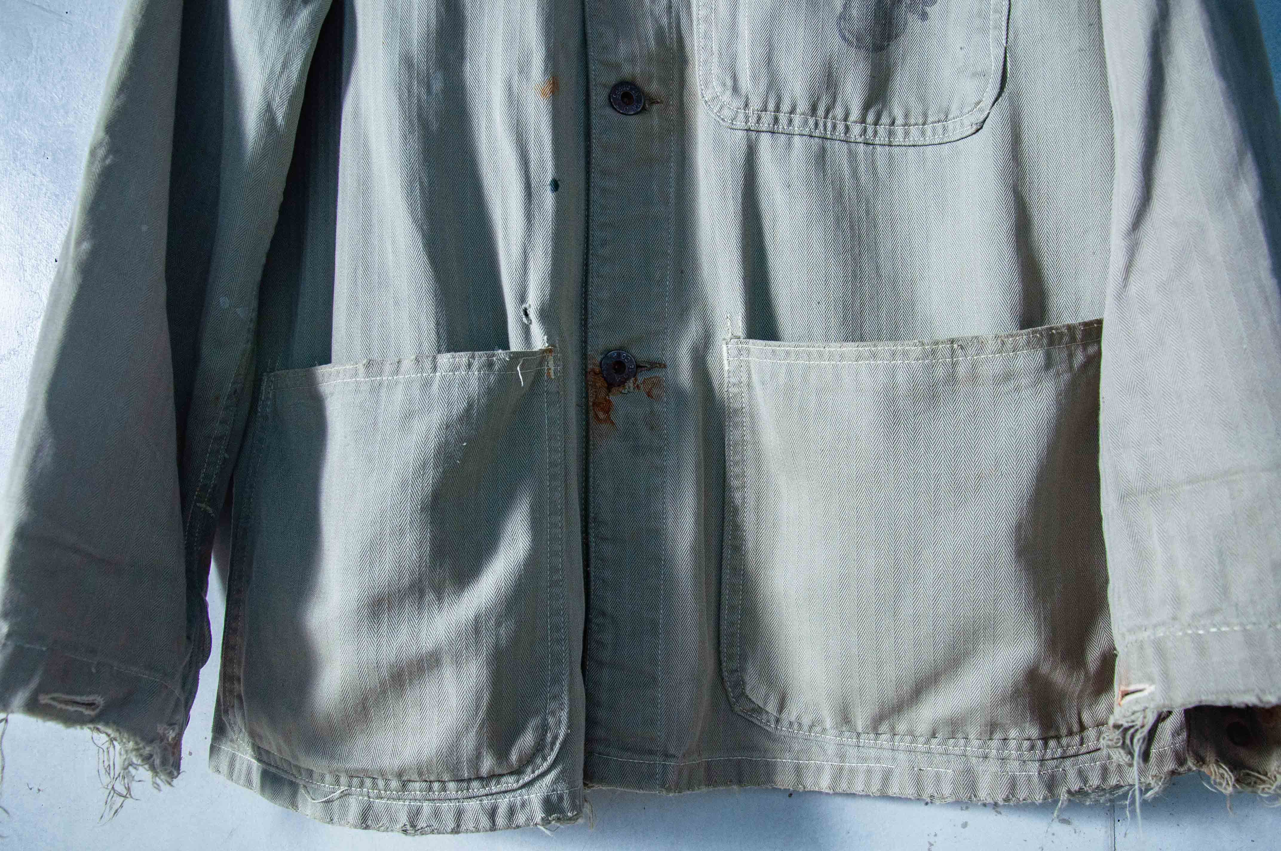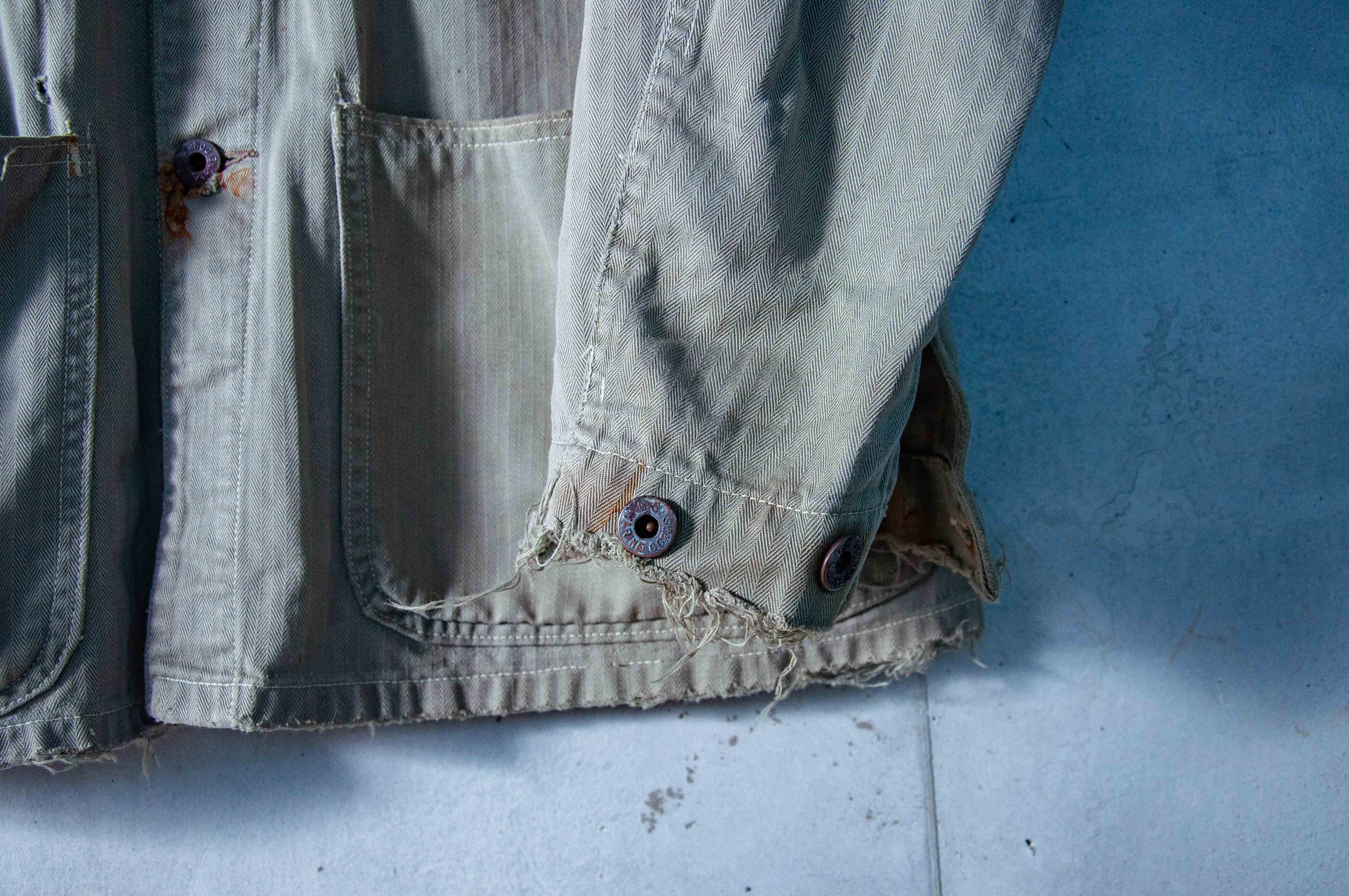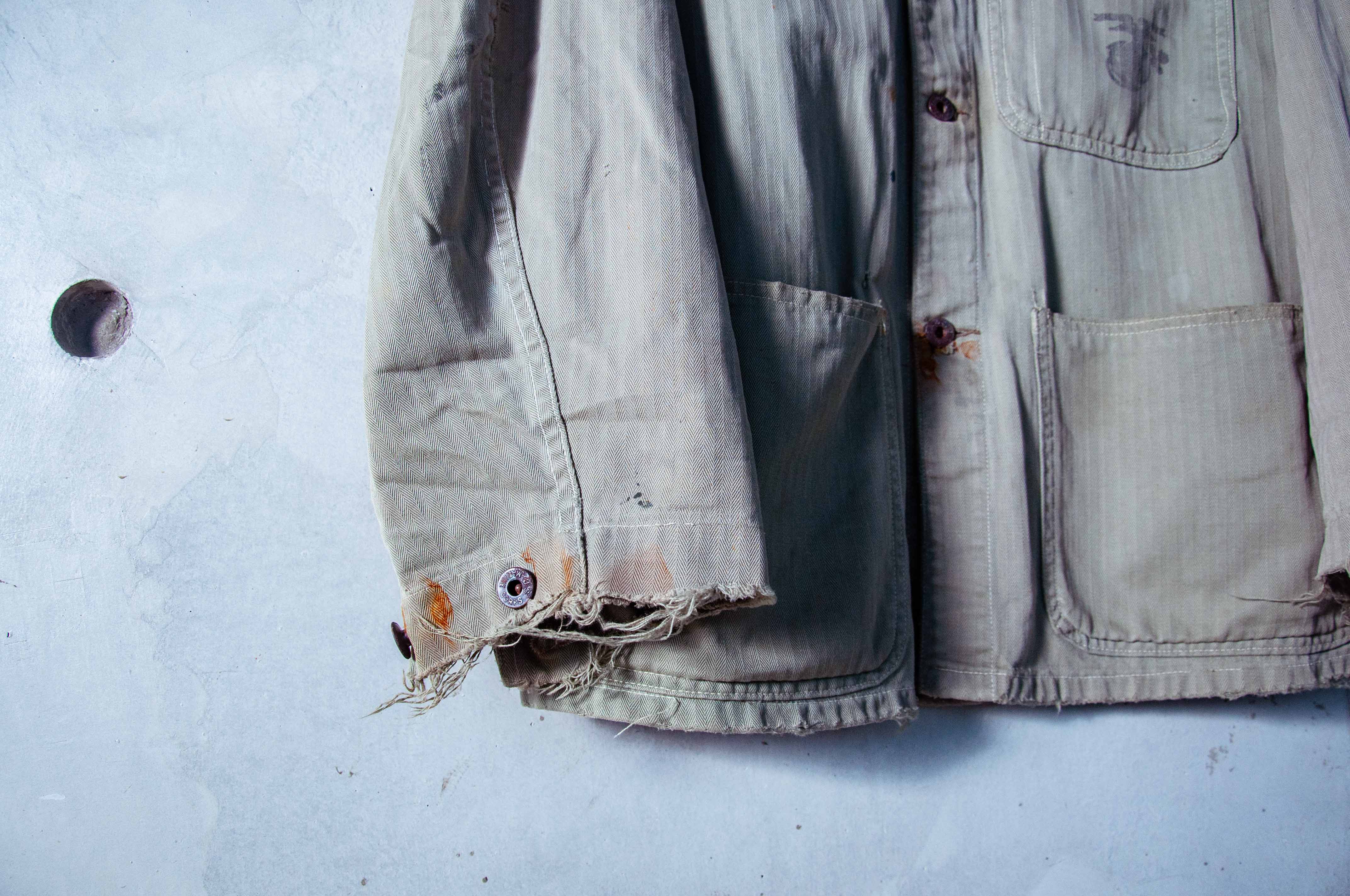 The Herringbone Twill fabric ( HBT ) is not only comfortable and breathable but also with good resistance to tearing and ability to prevent rips from spreading. Does shows some wear stains and holes, but still in very nice used condition and ready for wearing.