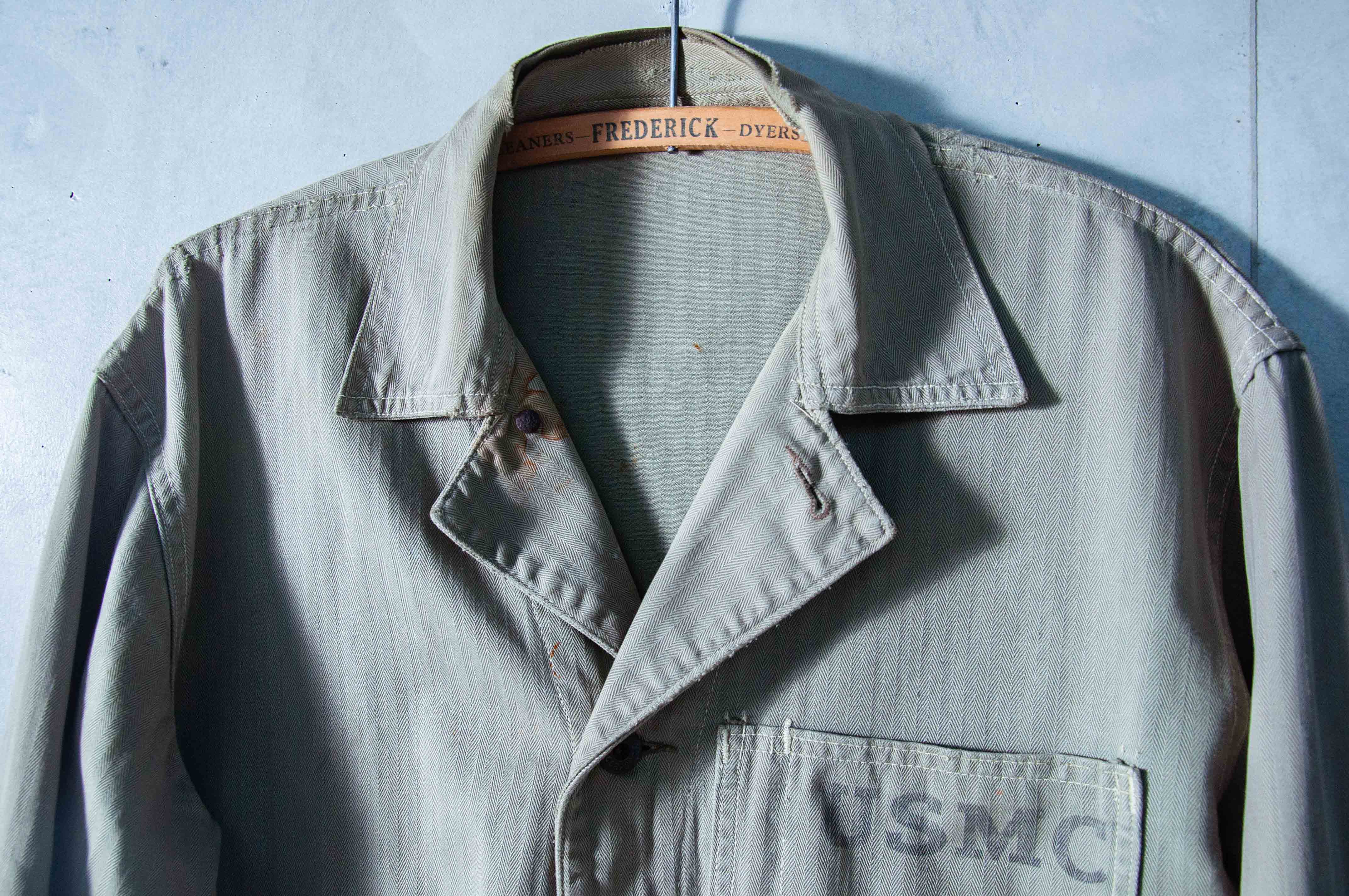 原版古着 40年代 二戰美國海軍陸戰隊公發 USMC HBT 人字紋布料 P41 野戰襯衫 ( F款 )