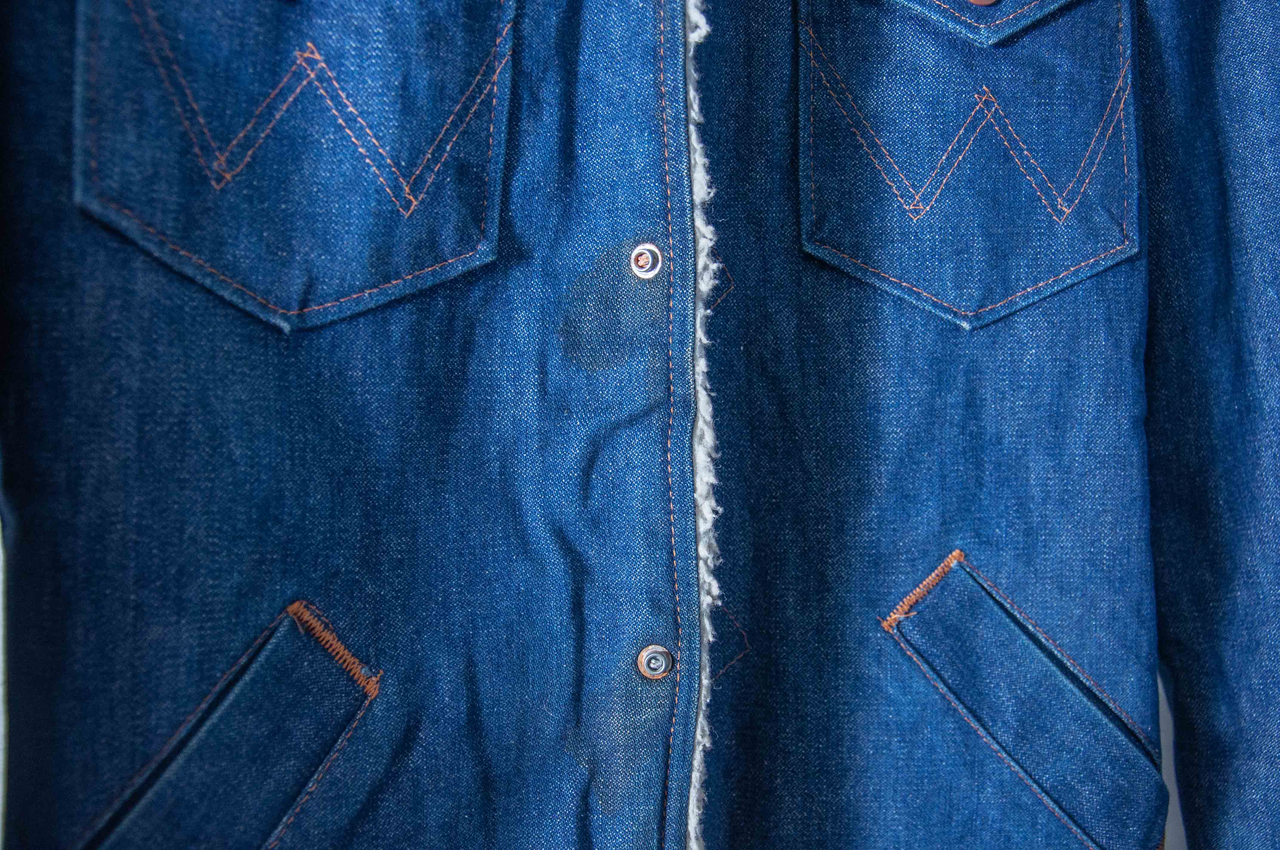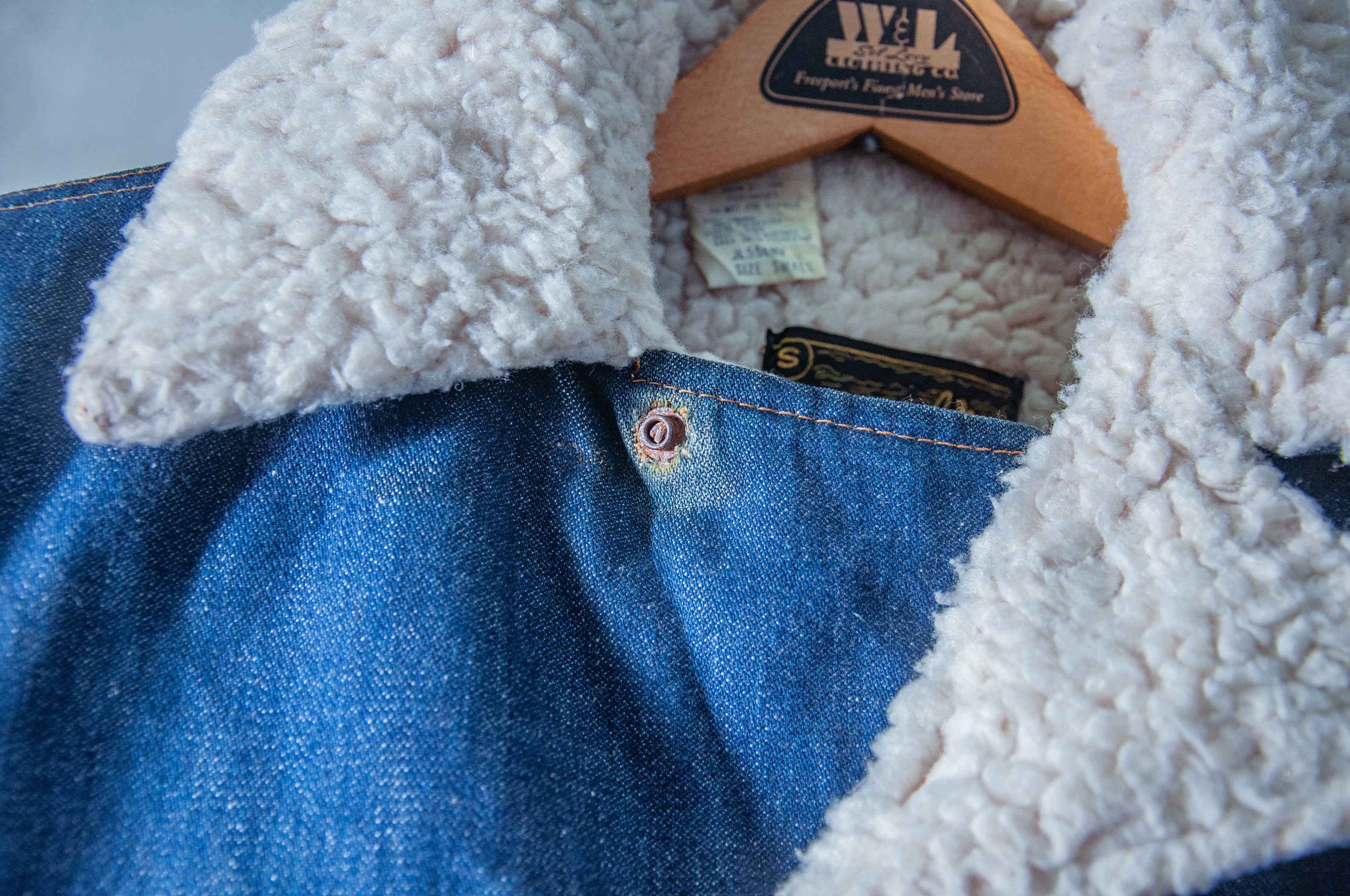 Original Vintage 70s Wrangler Sherpa Jacket In nice used vintage condition, excellent size, may show some wear and tear or stain due to the age or using, all snap button works. Denim fabric still in dark indigo color. Very nice and characteristic piece.