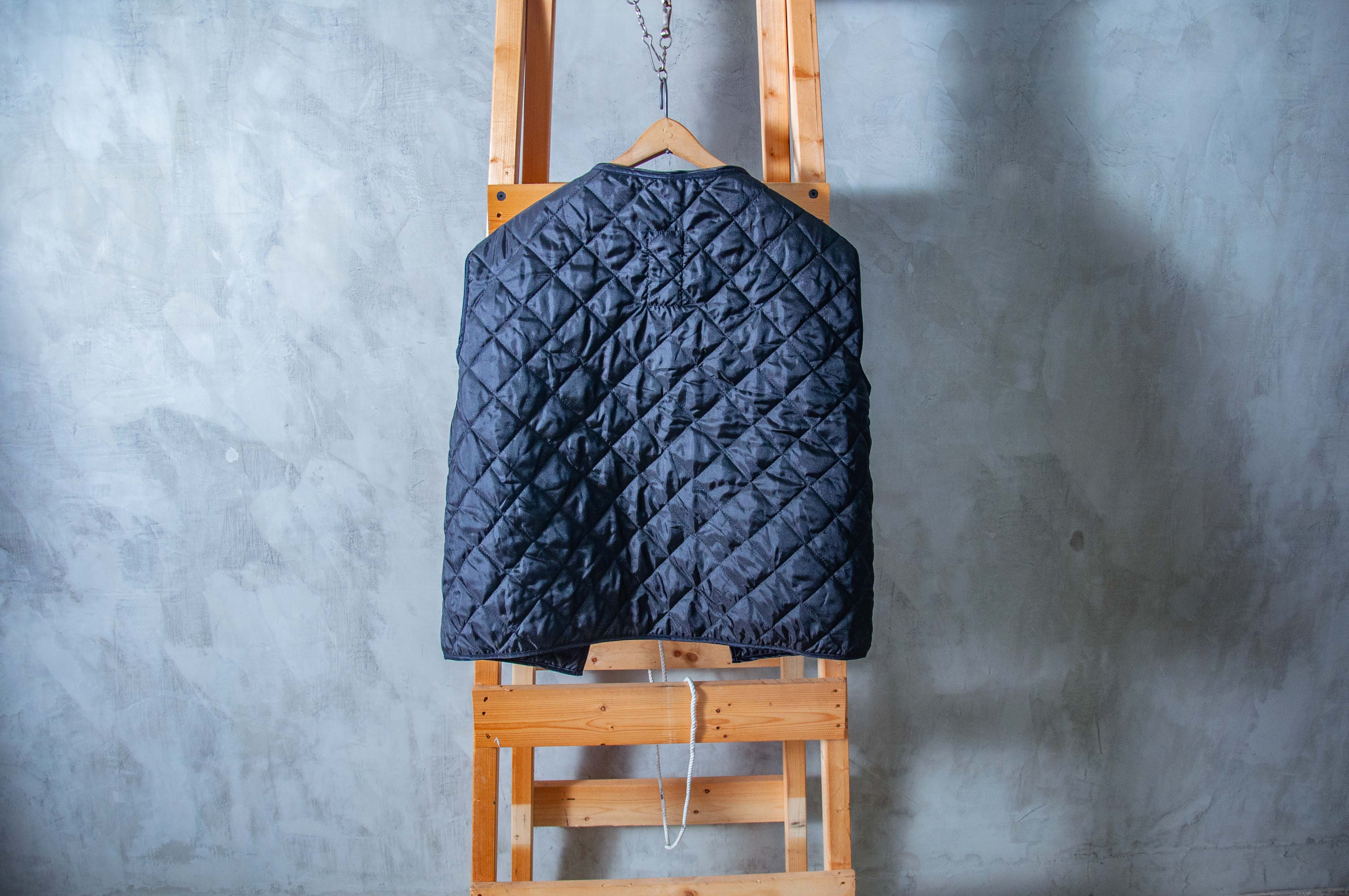英國國防部特種警察部隊所配給的夾克外套內裡背心,在台灣能見度極低。有別於美軍的葫蘆型縫衍,使用的是菱格紋鋪棉縫衍且縫線材質比起一般 M-65 Parka 或 夾克 所使用的更為耐用,相當保暖舒適且輕盈。使用上建議可以搭配在大衣外套裡增加保暖性並讓整體造型多一層層次,亦可將布料拆解作為其他用途。