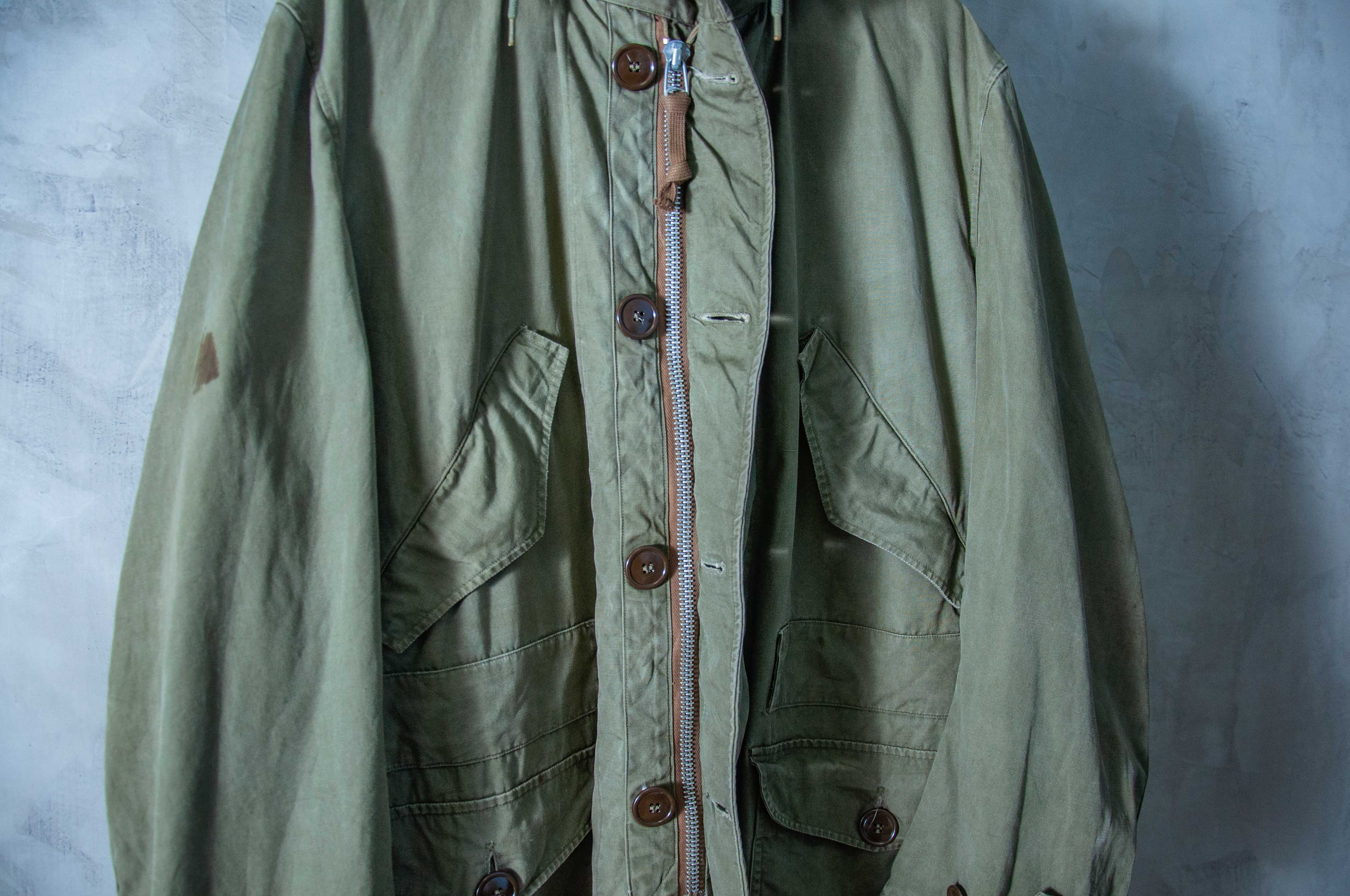本次所販售的美軍 M1947 野戰大衣 為陸軍配給退役品,尺寸為 L 號。有著服役使用過後的一些痕跡。所有五金及鈕扣皆無遺失,Conmar 主拉鍊狀況良好,功能正常。以距今將近 70 幾年的韓戰軍品而言,亦是非常難得的品項。