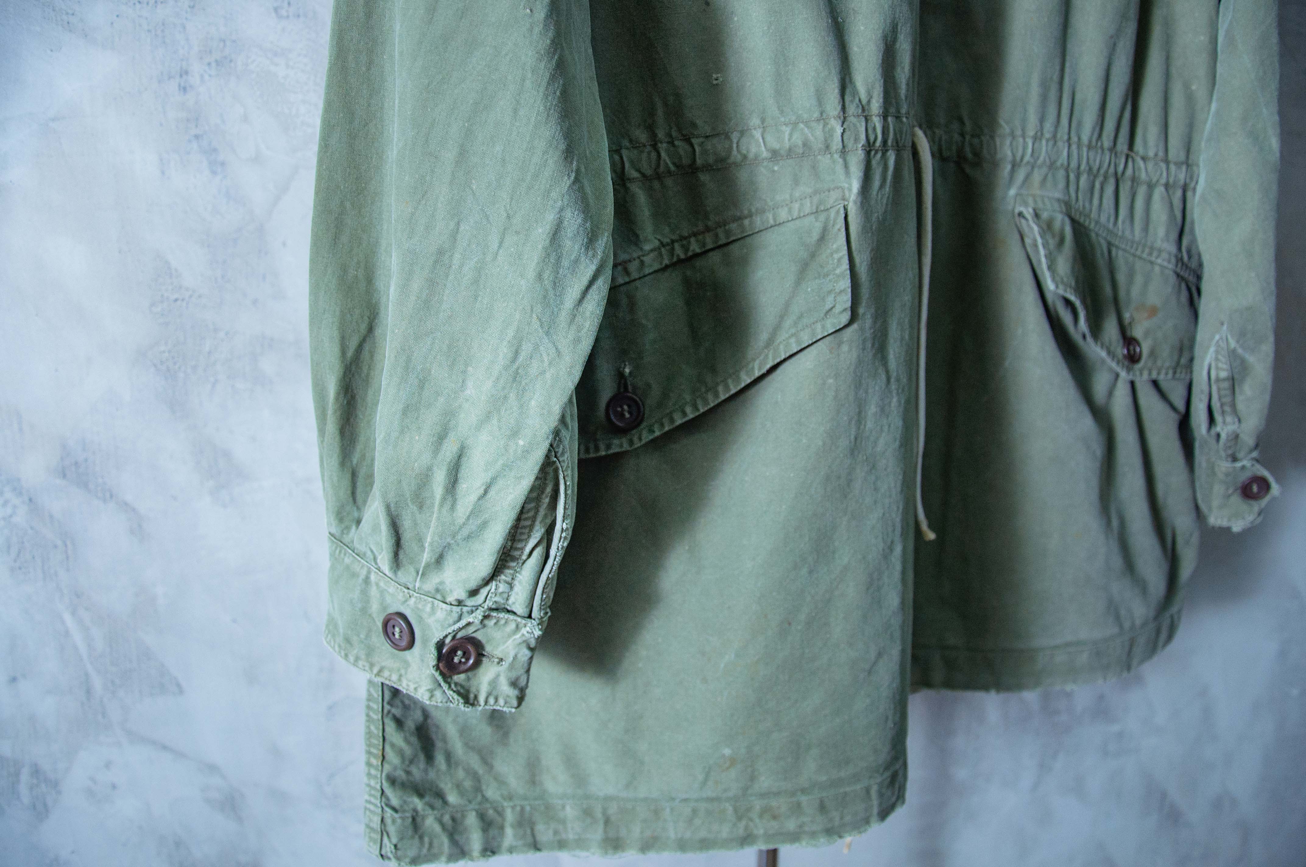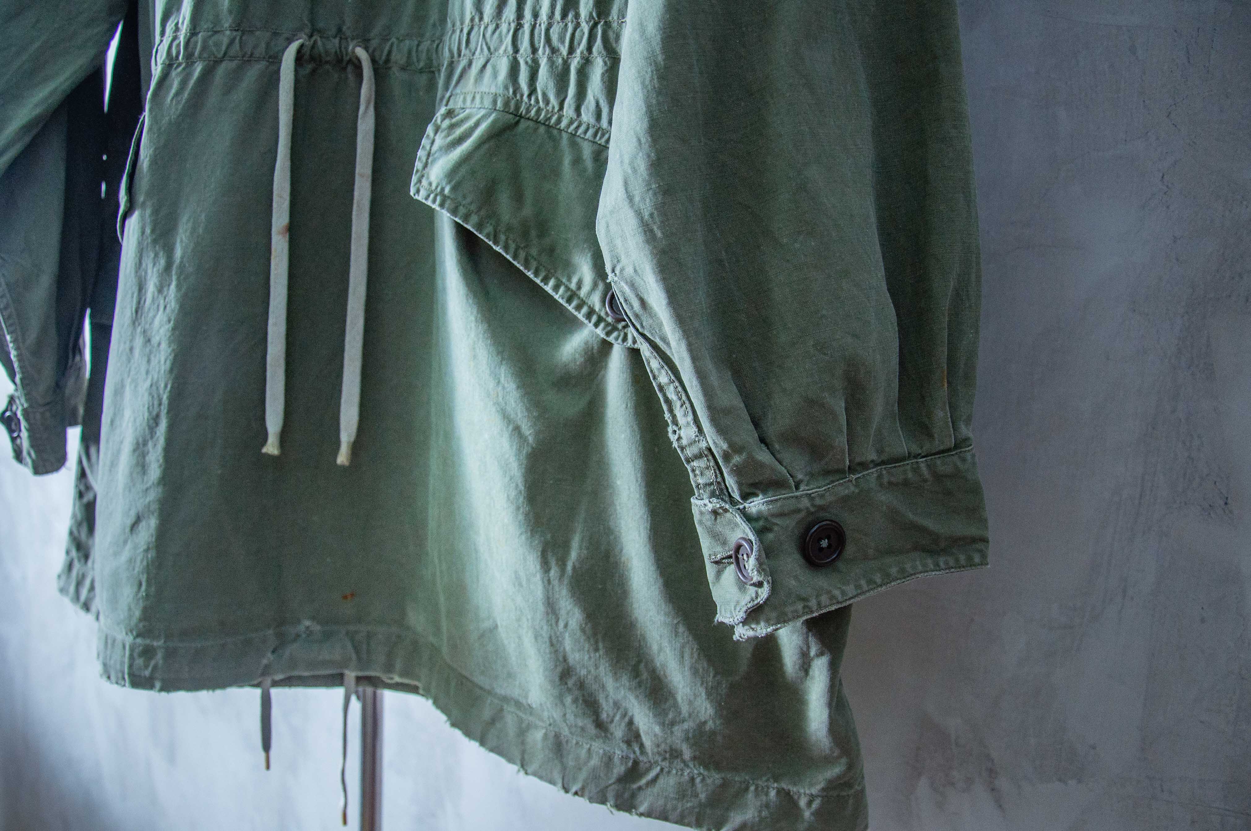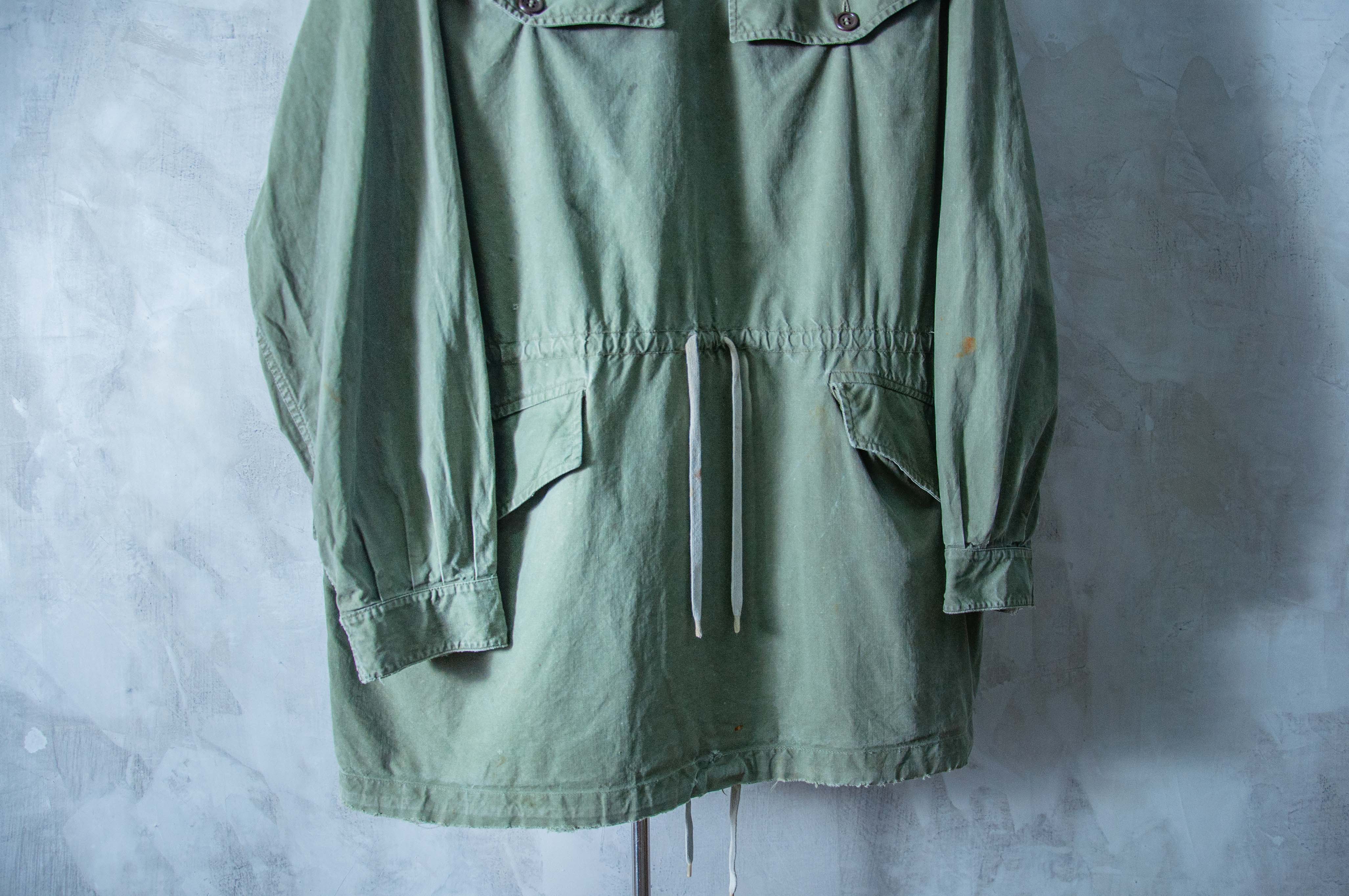 Very nice original 50s French Army Mountain Smock Parka. In good used vintage condition. Does have some wear and repair, tail remove. but still very nice and sturdy for the age, ready for wearing. Great characteristic piece.