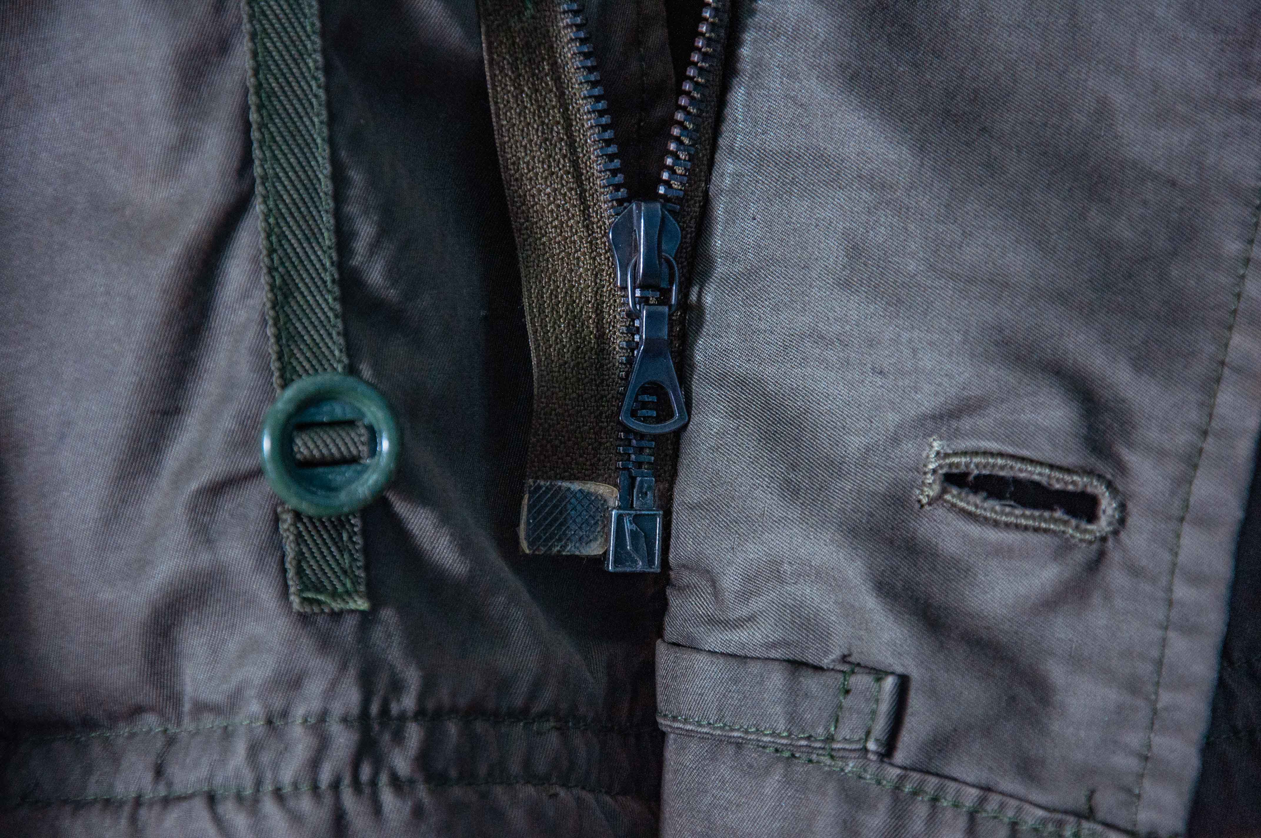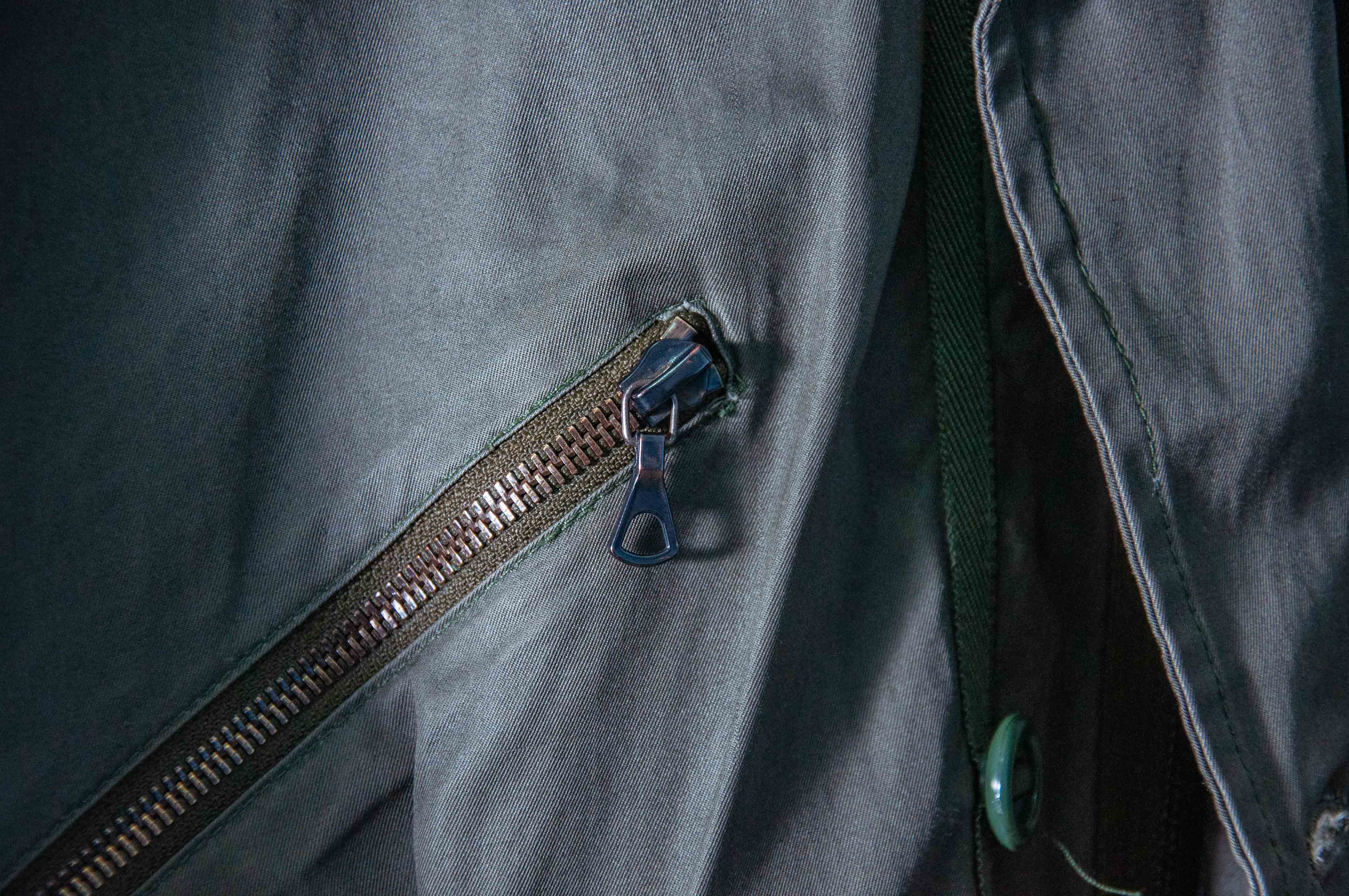 誠如我之前介紹 Middle Parka 中所提到,英軍對軍服的設計可以說是將對細節的要求發揮到了極致。尤其在使用體驗上為了讓士兵在使用拉鏈上更為順手,對拉鍊下方齒布、座插即及插鞘的活動空間都做了預留,而非將整條拉鍊做完全的車縫。這樣的設計會讓製程上多出一道工序,基本上很難於現代的服裝上再見到這樣的細節。