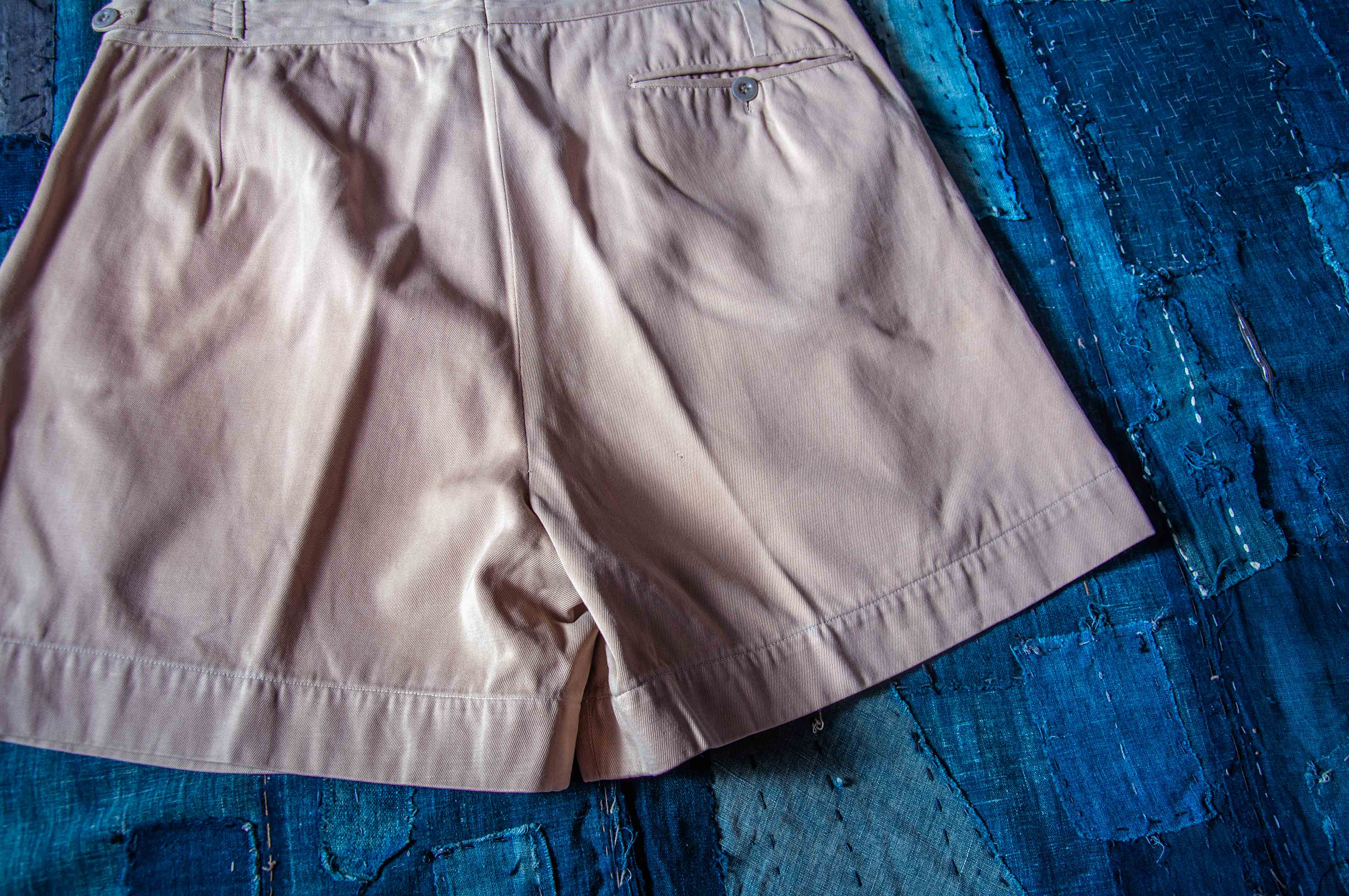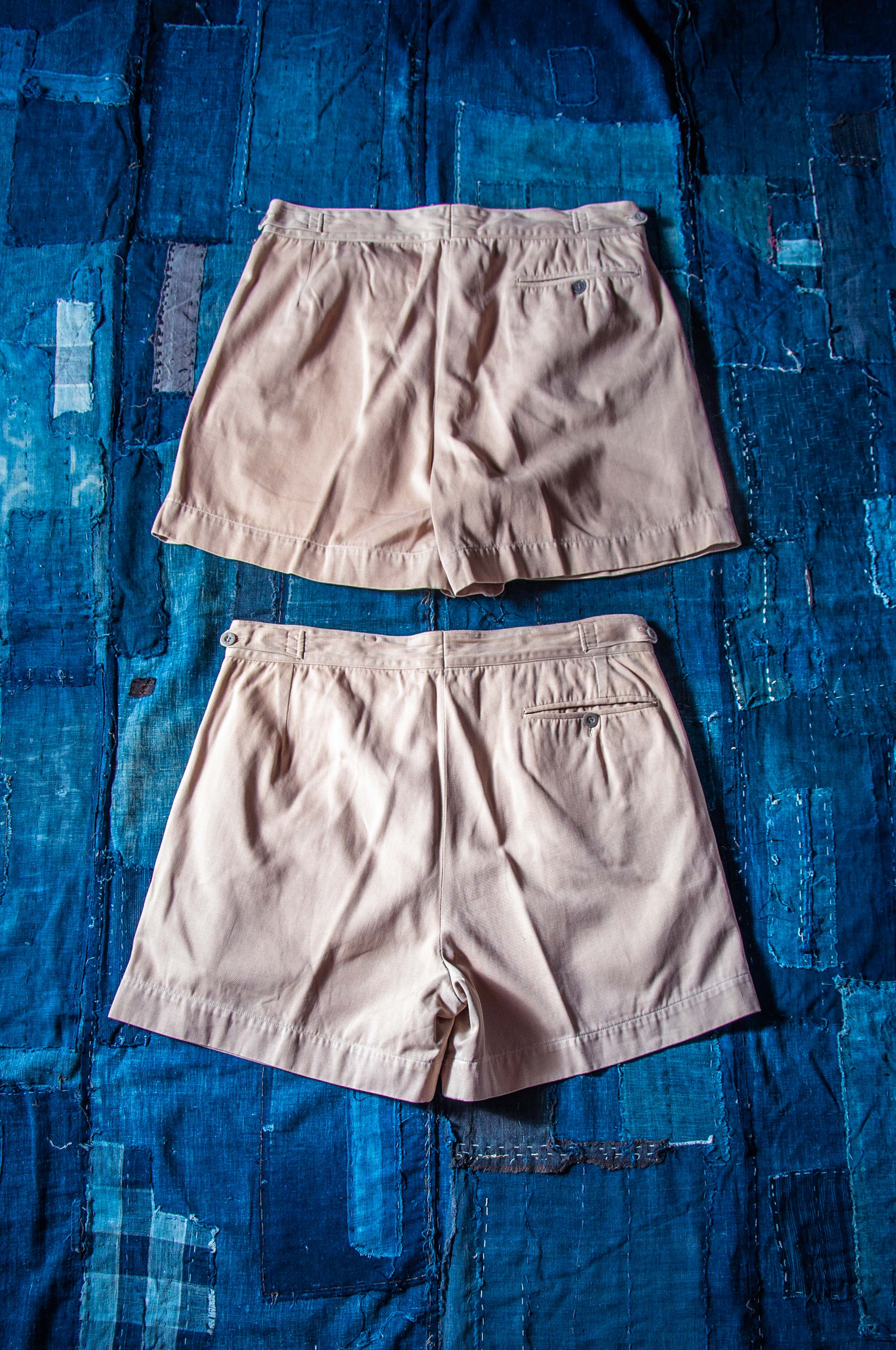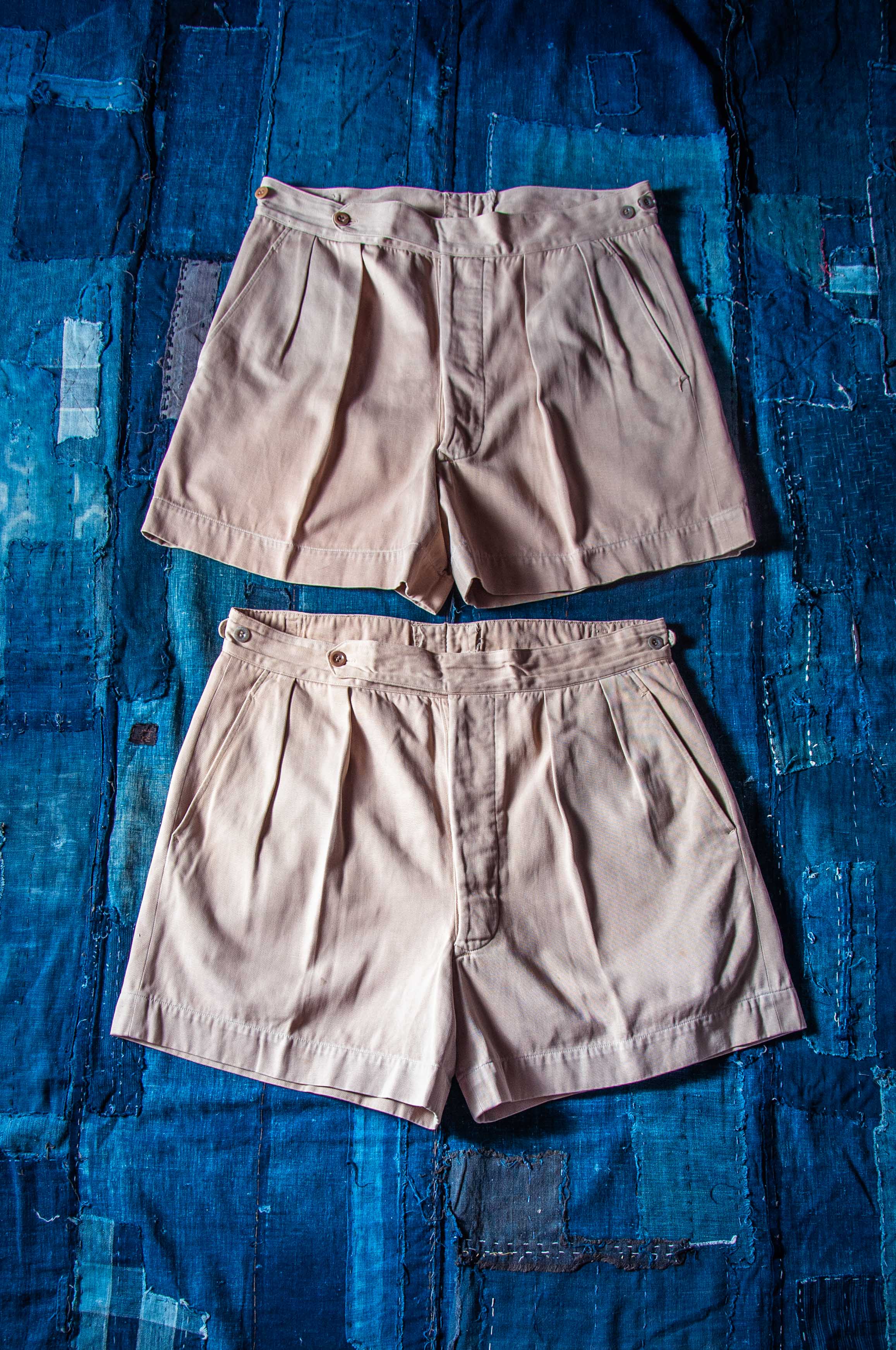 純棉卡其的這兩條品項漂亮,布料結實,搭配數顆異色早期原裝尿素釦。僅有正常使用及長年保存下的輕微痕跡,亦無重大破損。