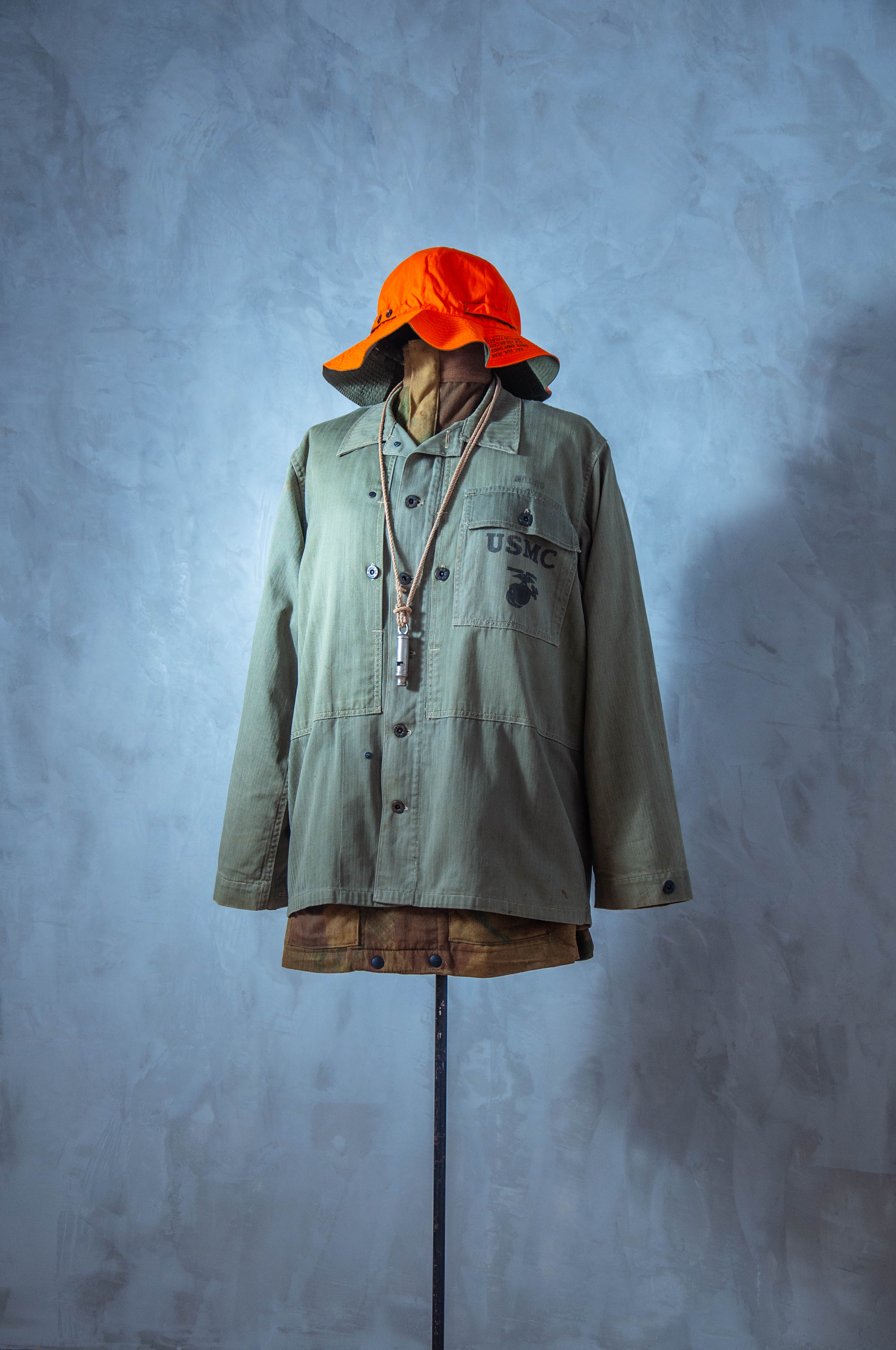 美國海軍陸戰隊於二戰後期開始使用的 P44( 但真正開始被廣泛使用,則是要等到幾年後的韓戰戰場 )可以說是在所有美軍 HBT 中,私心認為設計及機能性最好的多功能作戰上衣了。Nigel Cabourn 私下也非常頻繁著用。當時海軍陸戰隊建制的人數就少於陸軍,且所執行的任務難度大多最為艱難,所以現存狀況完整良好的原版 P-44 更是越來越不容易見到了。近年來其價格的漲幅也愈趨強勁,如果您在尋找一件同時具有獨特性及收藏性的軍品古著,P44 絕對是您很好的選擇。