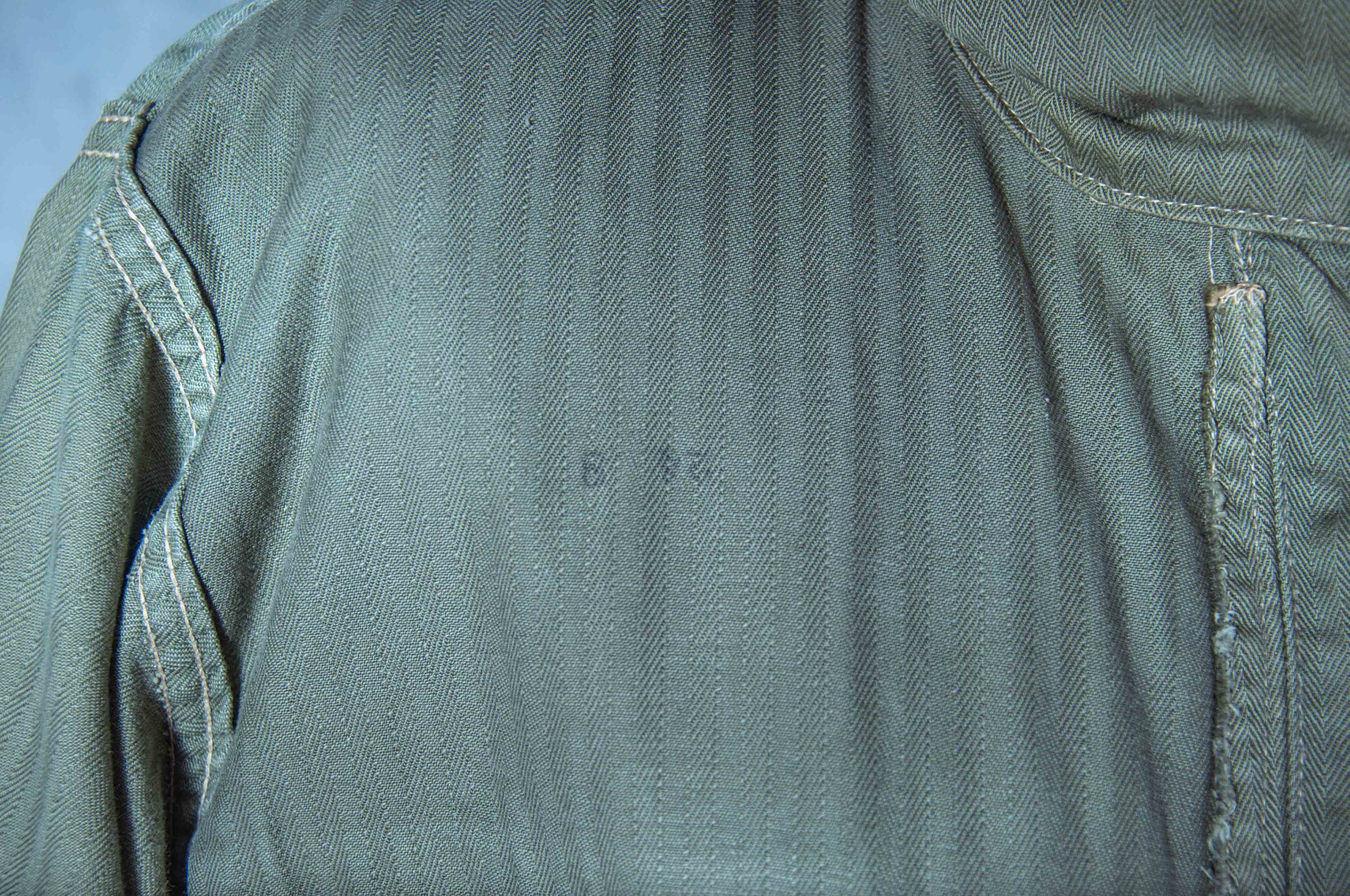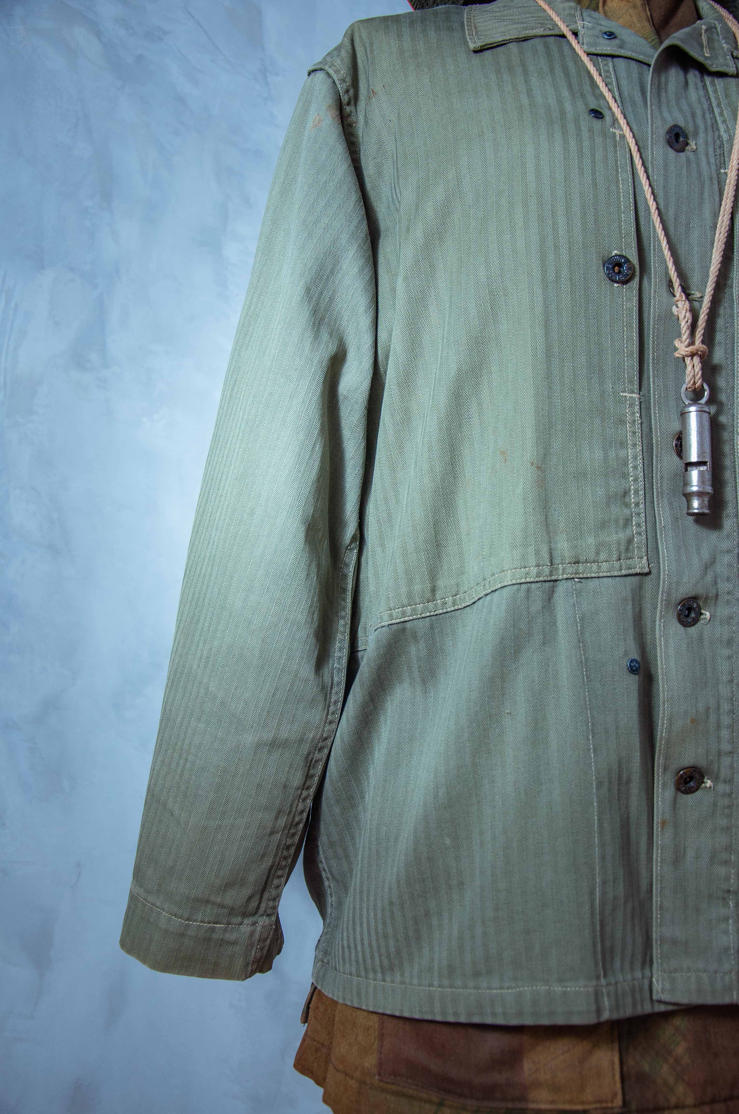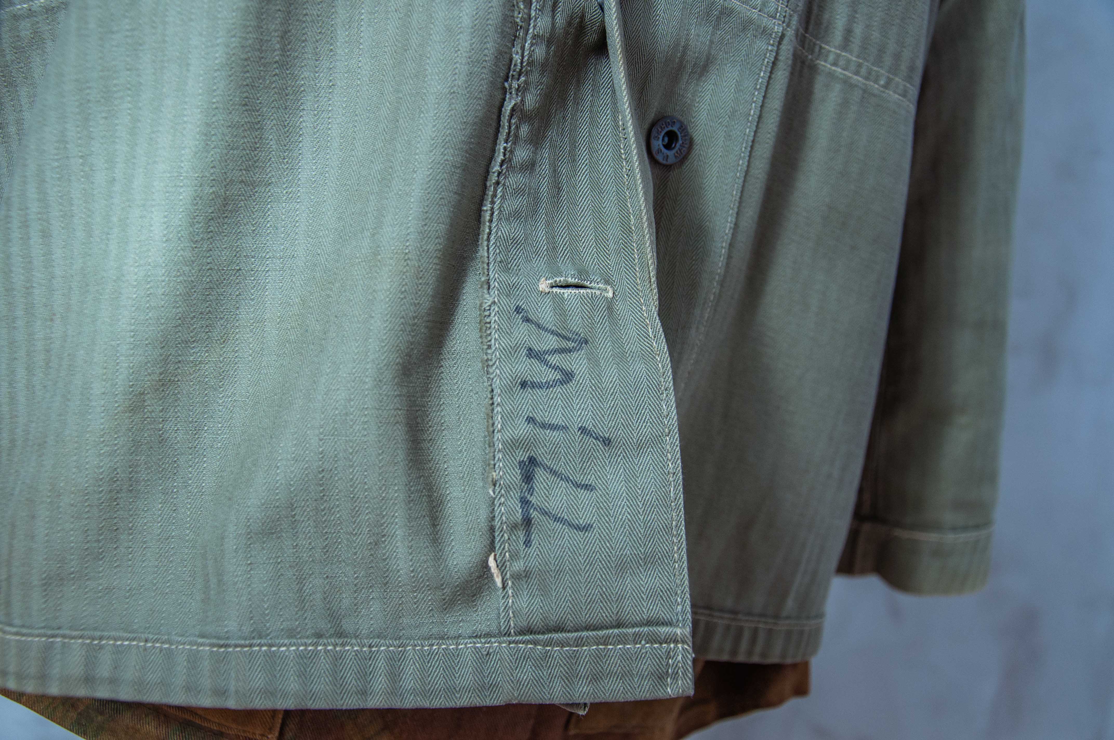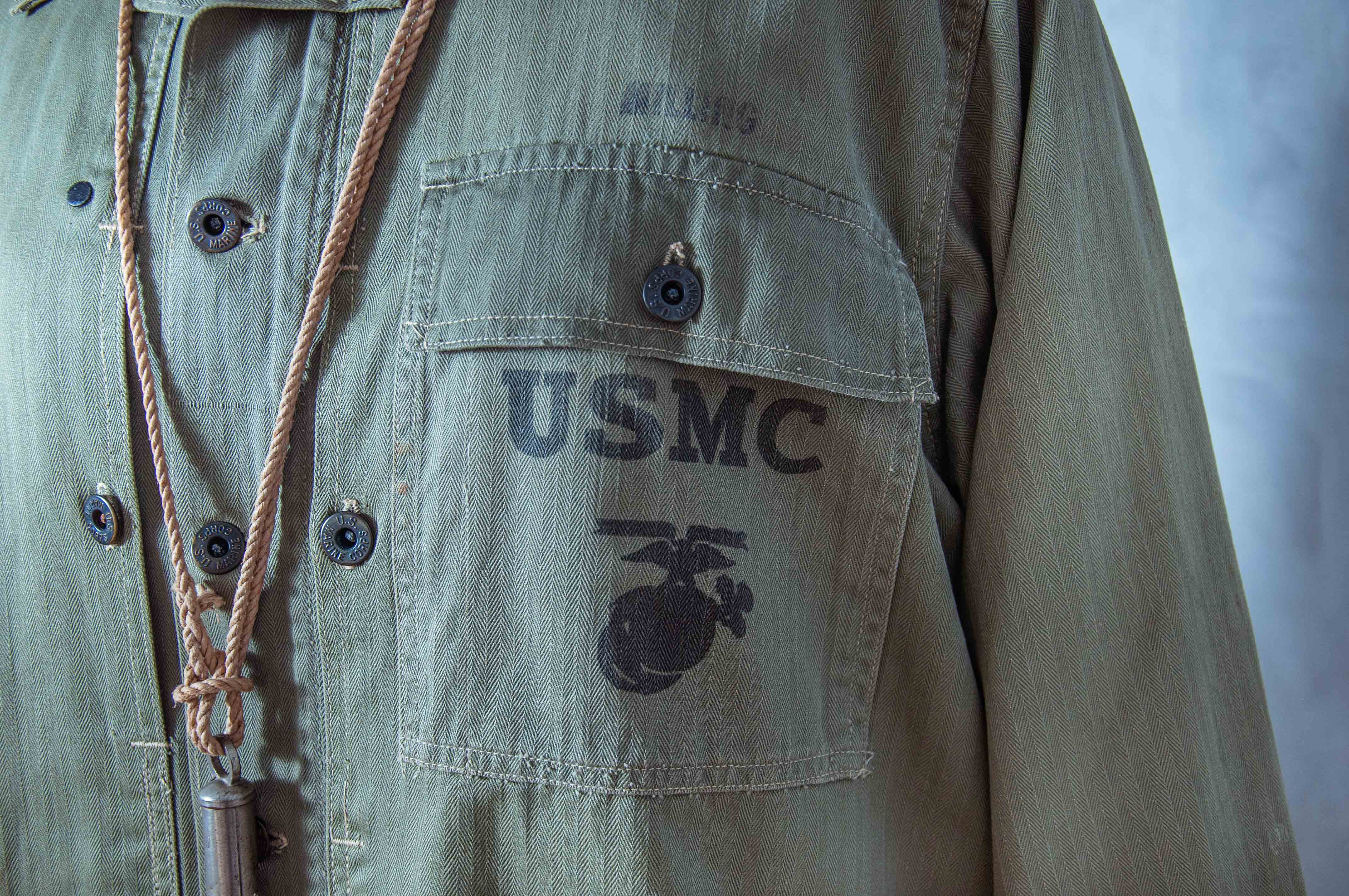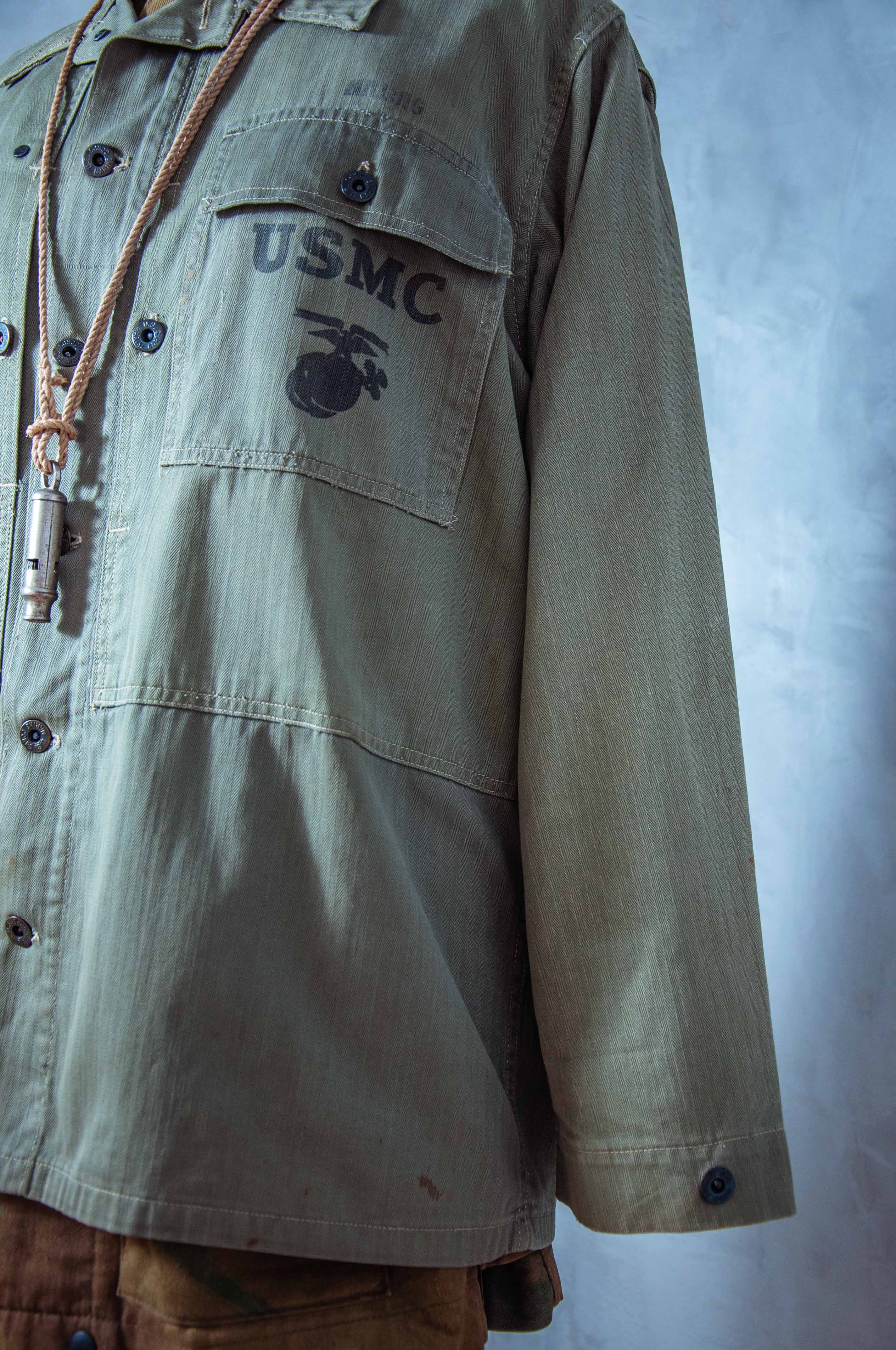 原版古着 40年代 二戰美國海軍陸戰隊公發 USMC HBT 人字紋布料 P44 野戰襯衫 稀有異色拼接