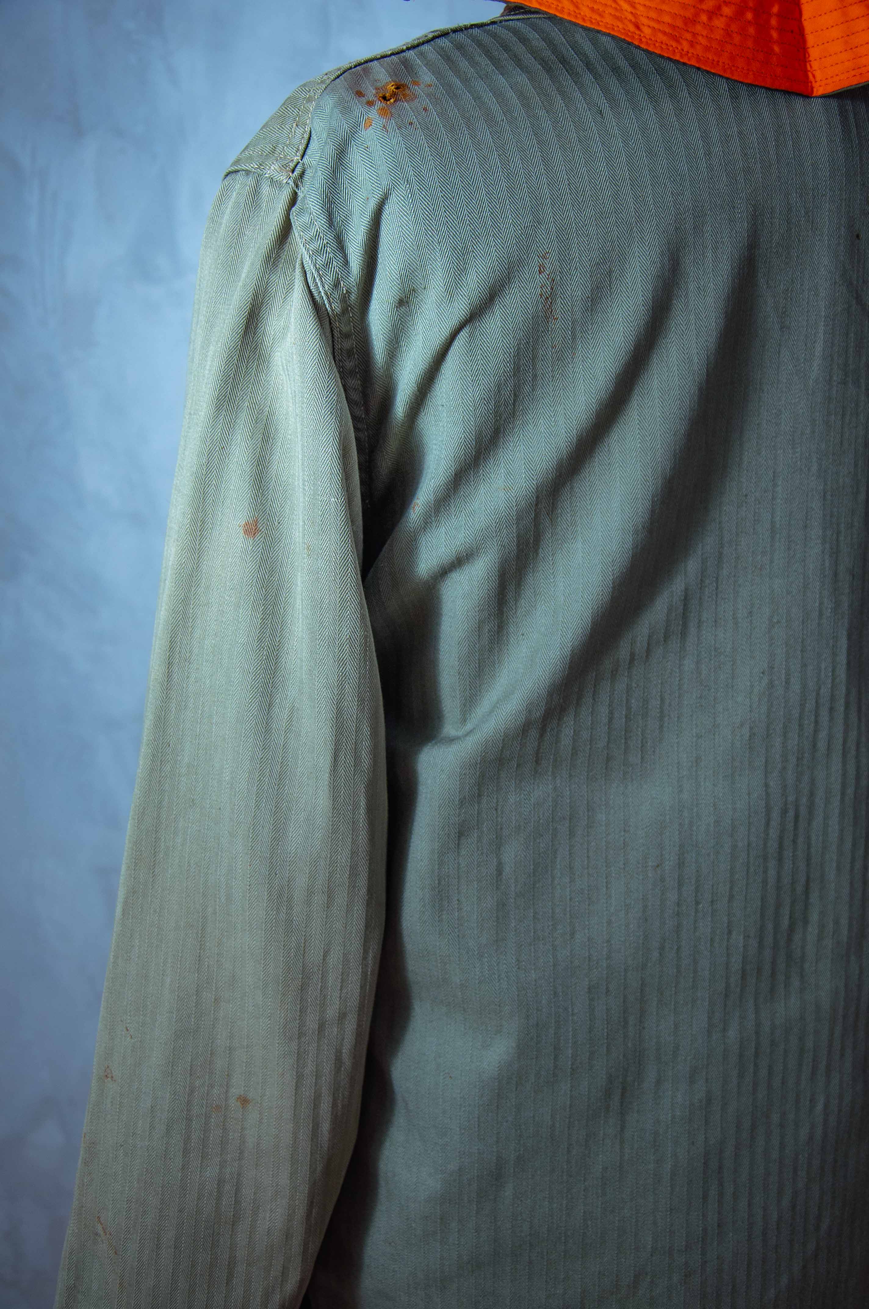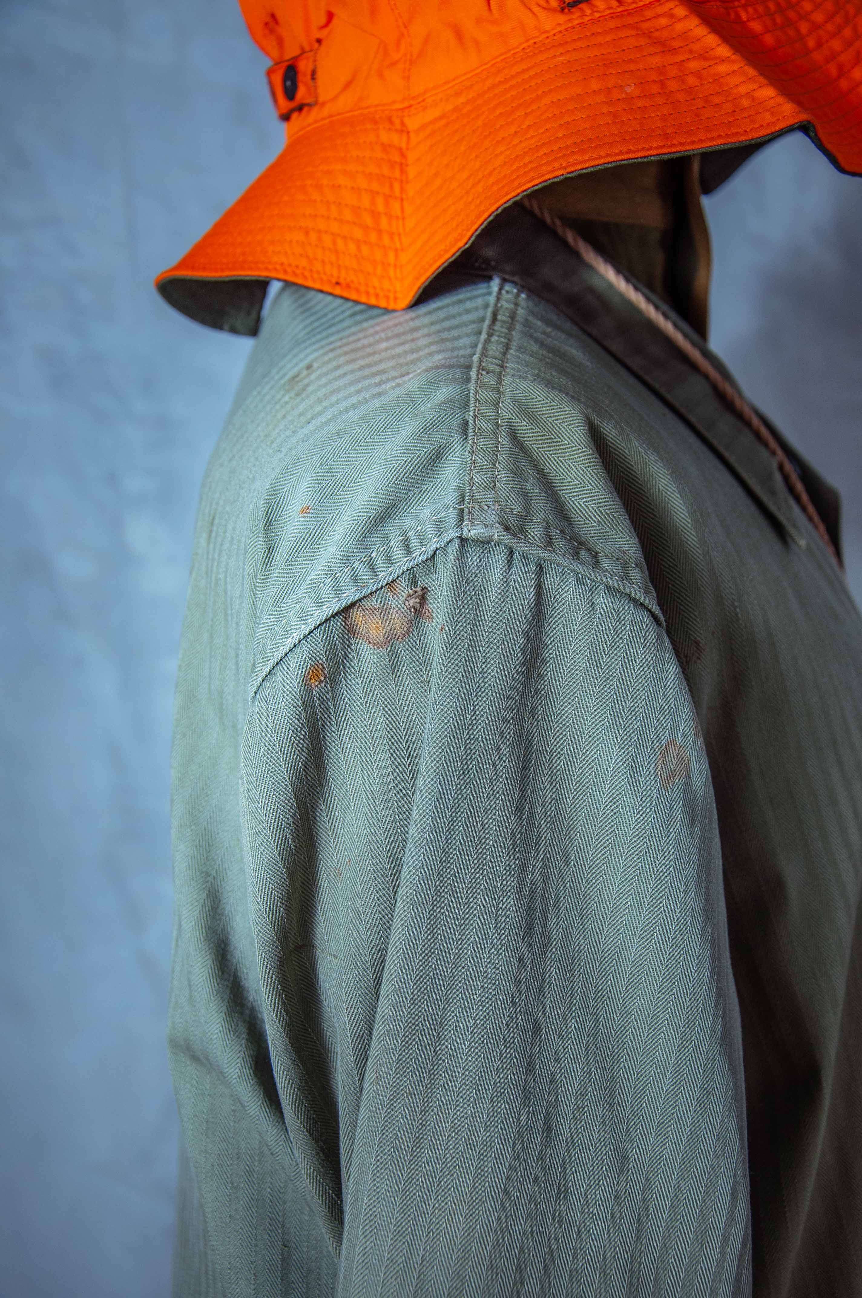 Original Vintage 40s WWII USMC Herringbone Twill P-44 HBT Utility Shirt ( Two-Tone Pattern )