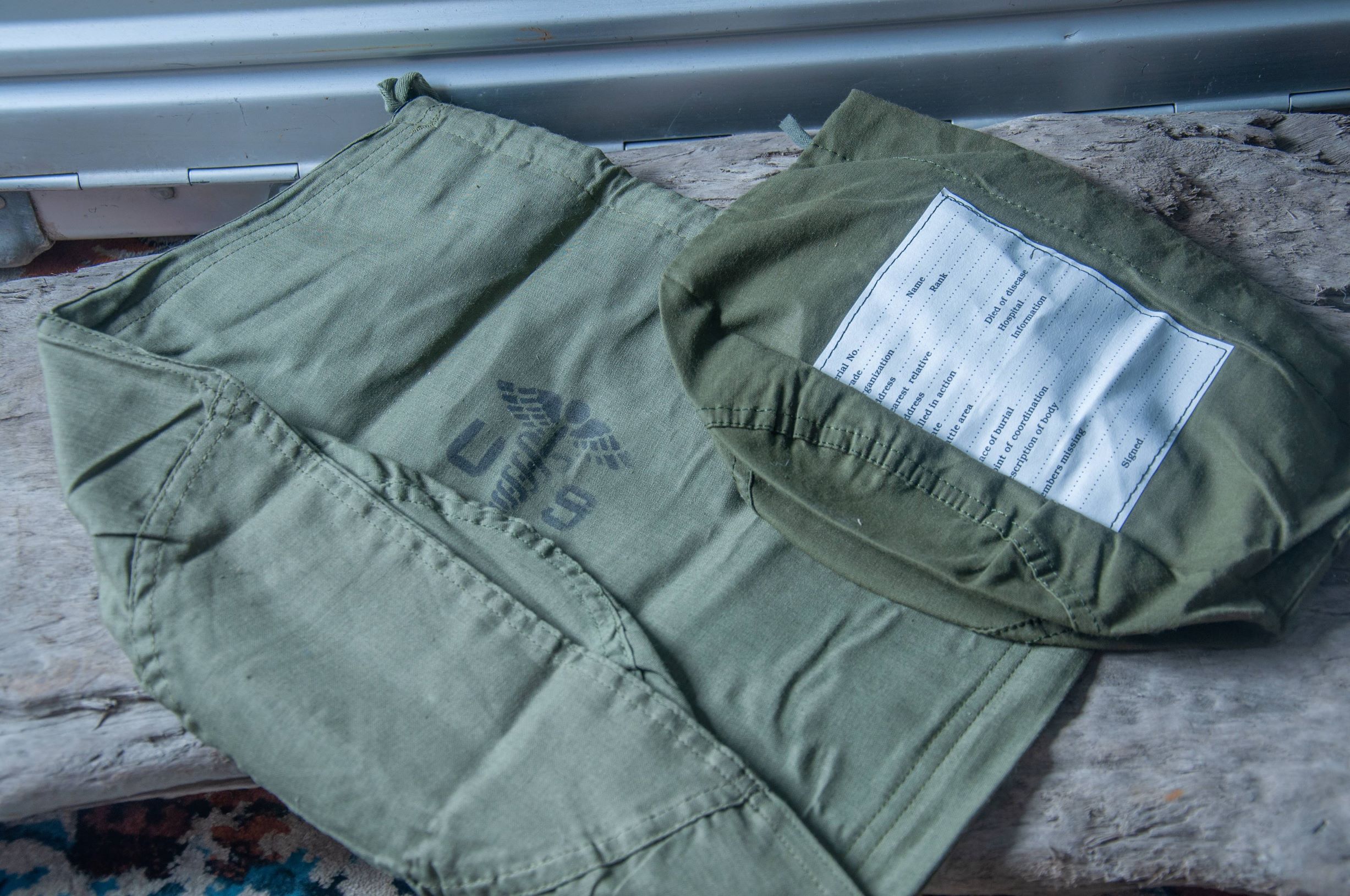 美軍公發的病患個人物品收納束口袋,當初則是設計供各軍醫院及野戰醫院的病患作為個人物品及換洗衣物的收納袋使用,空間較遺物袋大且內有額外的防水隔層,能個別保護需要保持乾燥的物品。較長的束口袋設計也同時具有手提及肩背的功能。