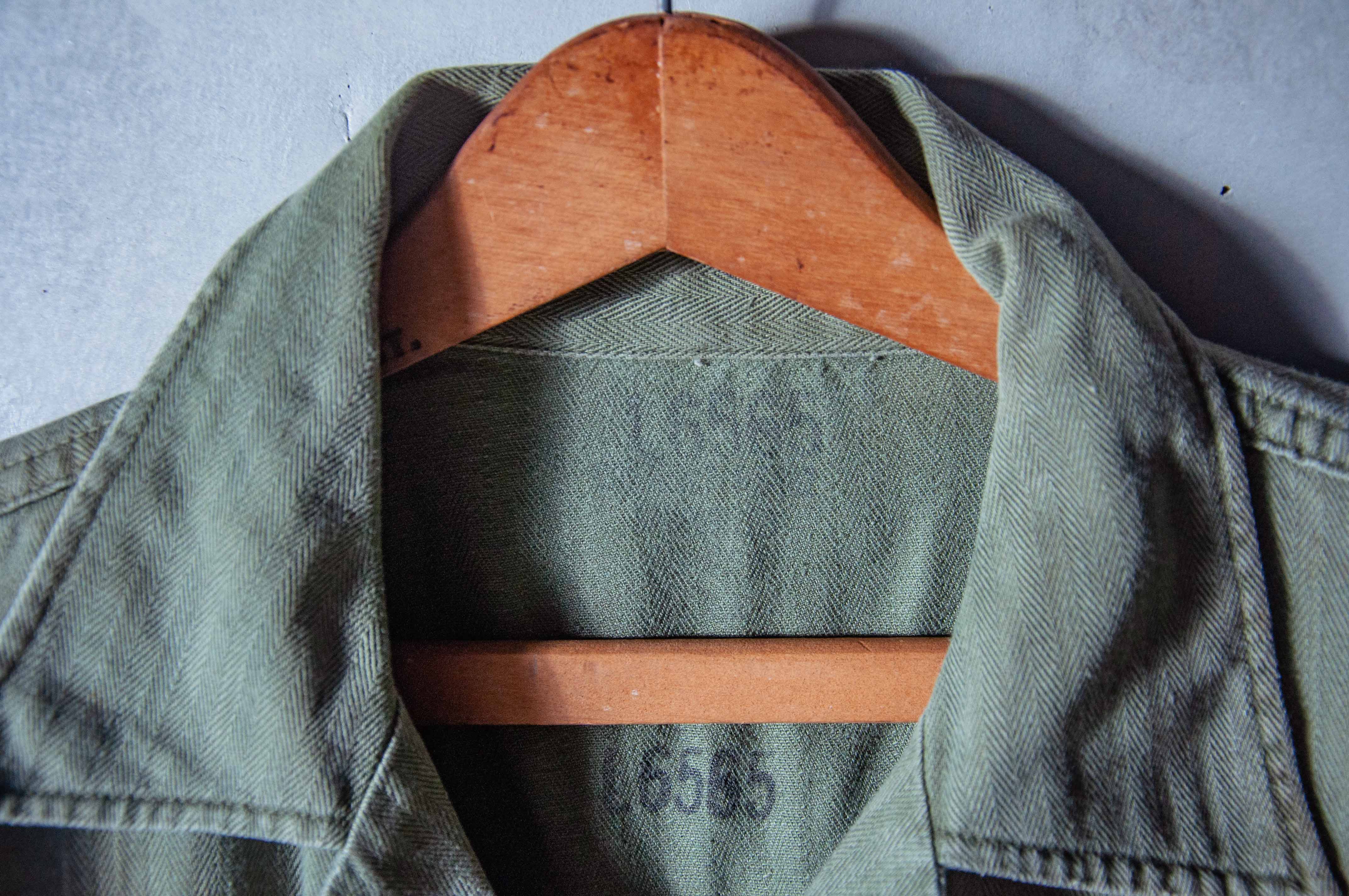 Original U.S. Army M-47 4th Pattern Herringbone Twill 13 Stars Button Utility Shirt ( A )