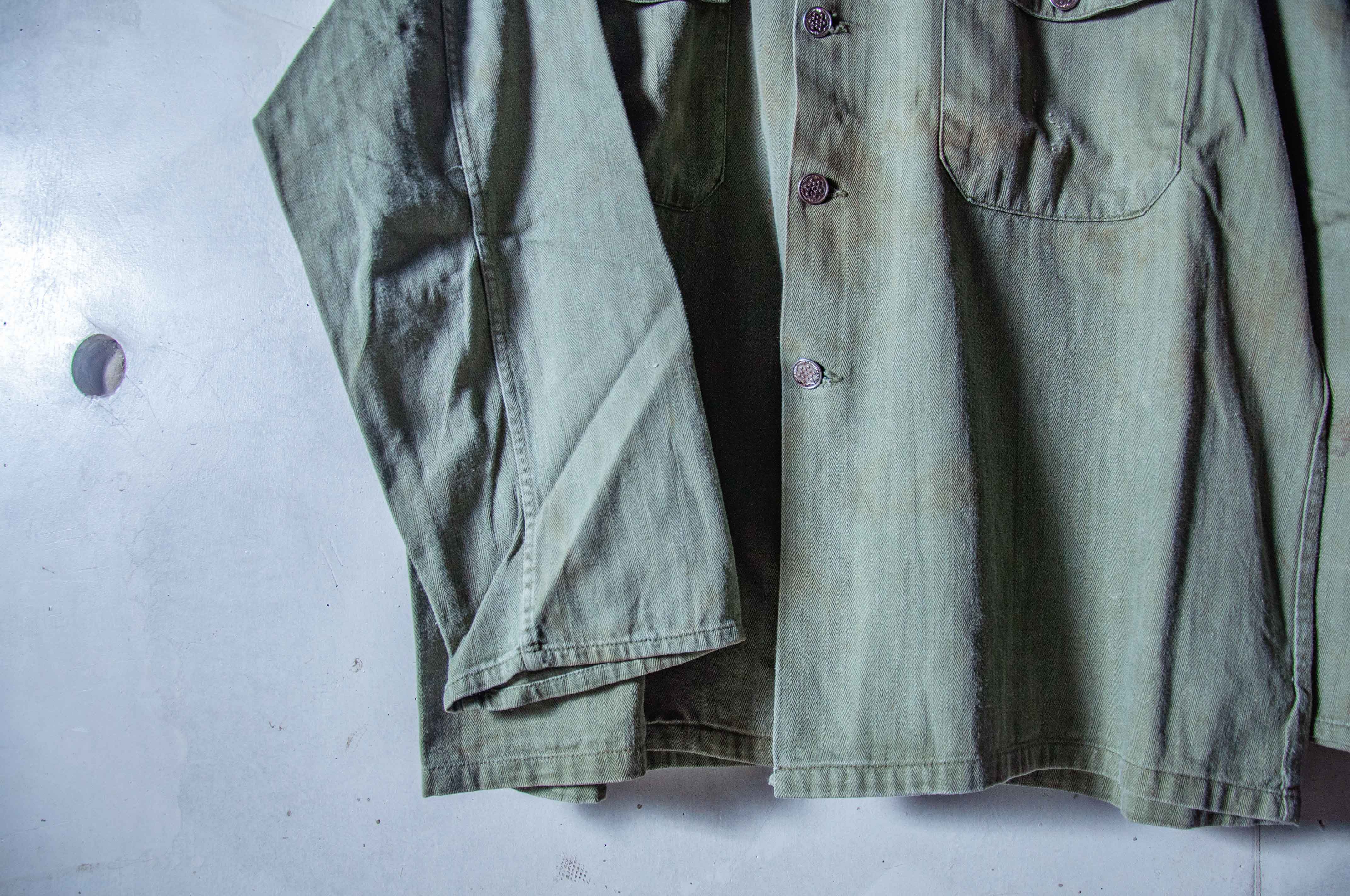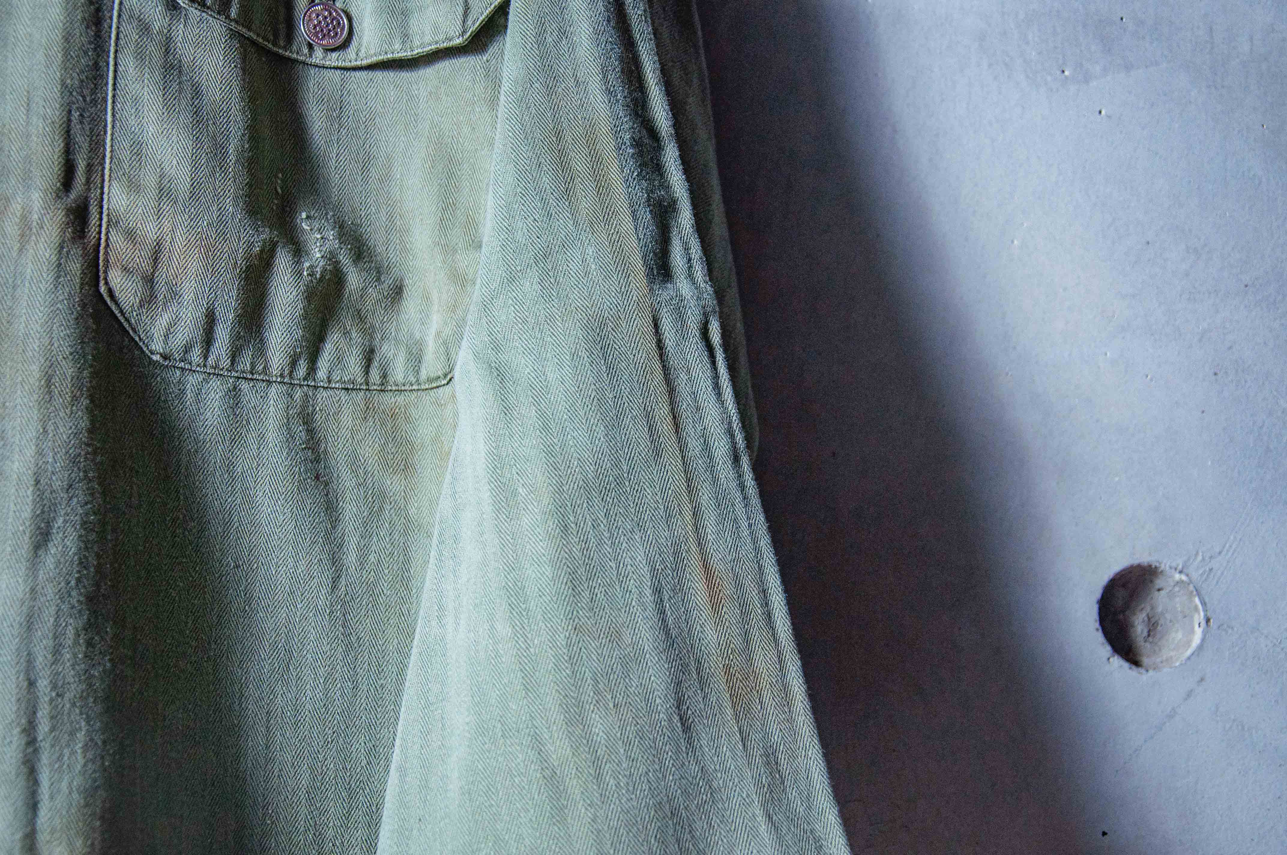 原版古着 40年代 美國陸軍公發 M47 第四型 HBT 人字紋布料 13星釦 野戰襯衫 4th Pattern ( A款 )