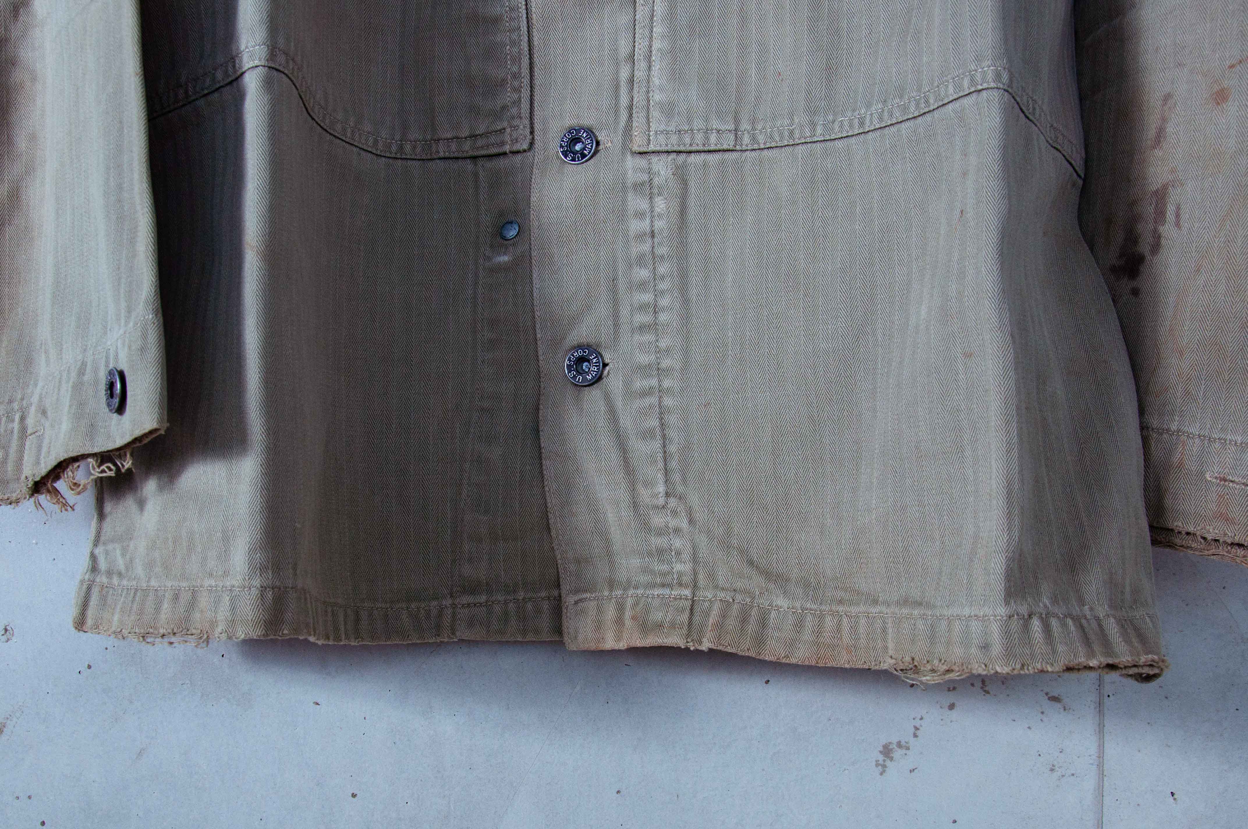 Original 40s WWII USMC Herringbone Twill HBT P-44 Utility Shirt ( E )