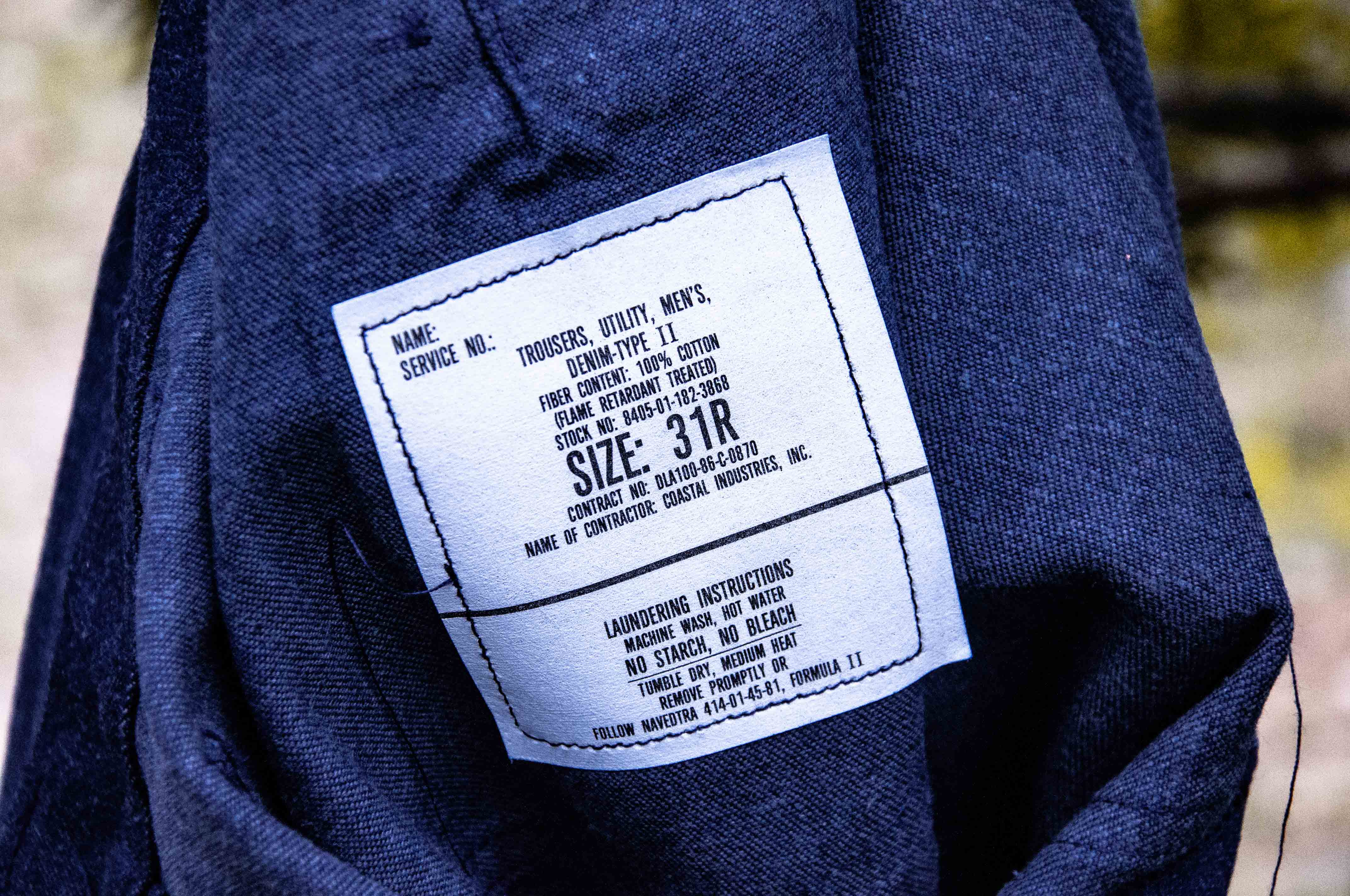 全新庫存美國海軍公發海軍丹寧工作褲,合約年份1986年。