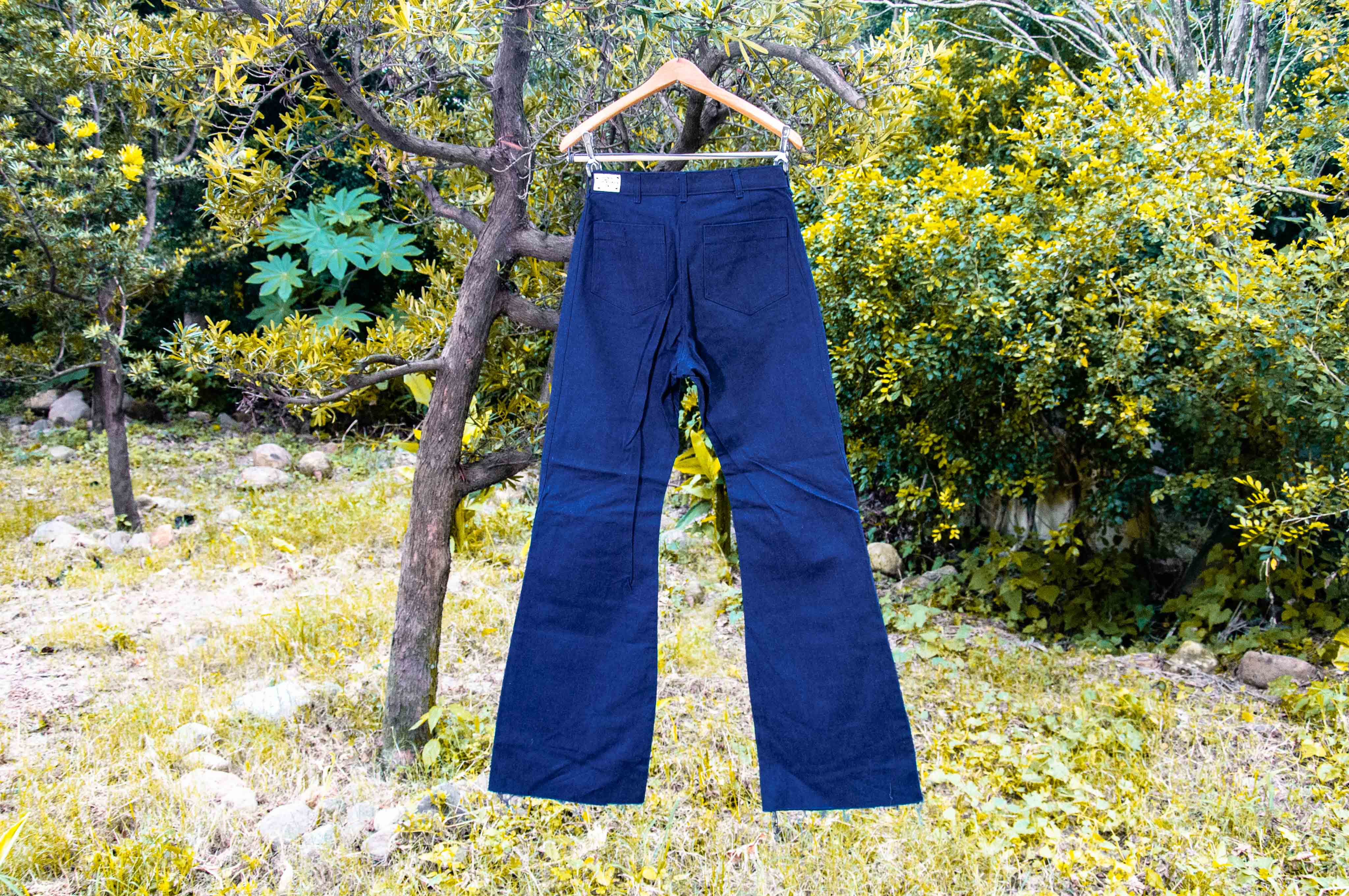 Original 80s US Navy Issue USN Denim Work Pants. In Deadstock condition. Very deep Indigo color. Strong and sturdy Ideal brass zipper. No rips, tears or stain. Ready for wearing.