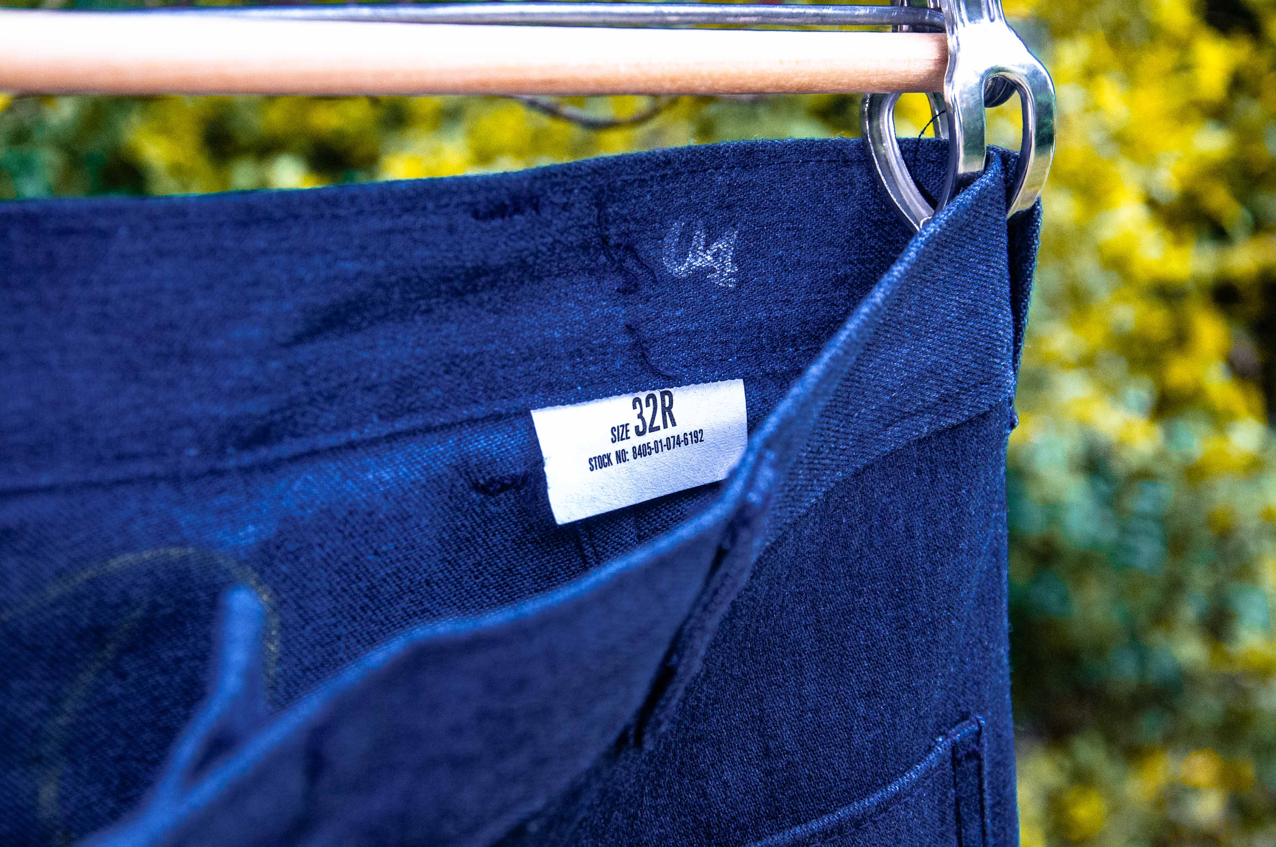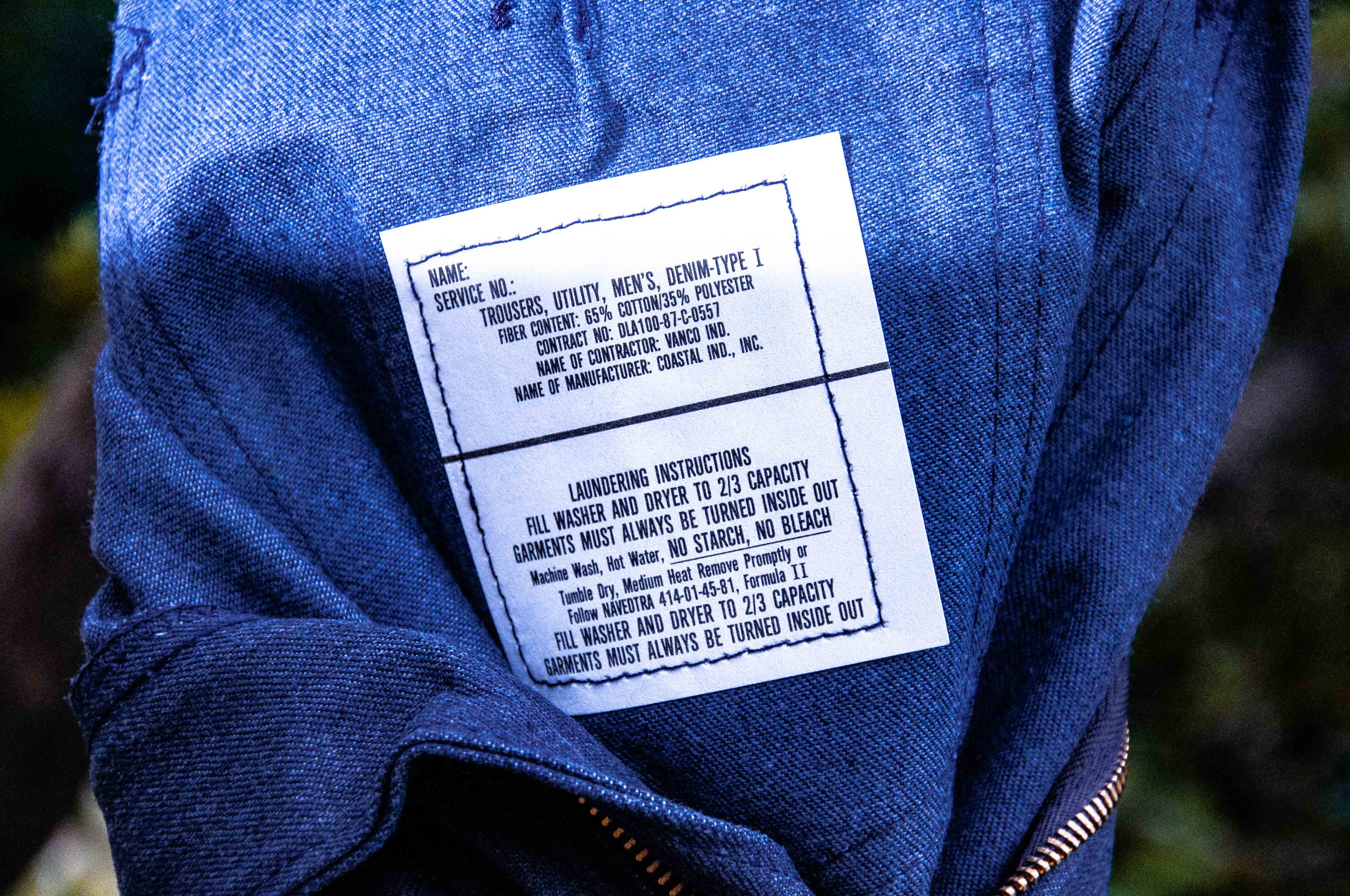 全新庫存美國海軍公發海軍丹寧工作褲,合約年份1987年。