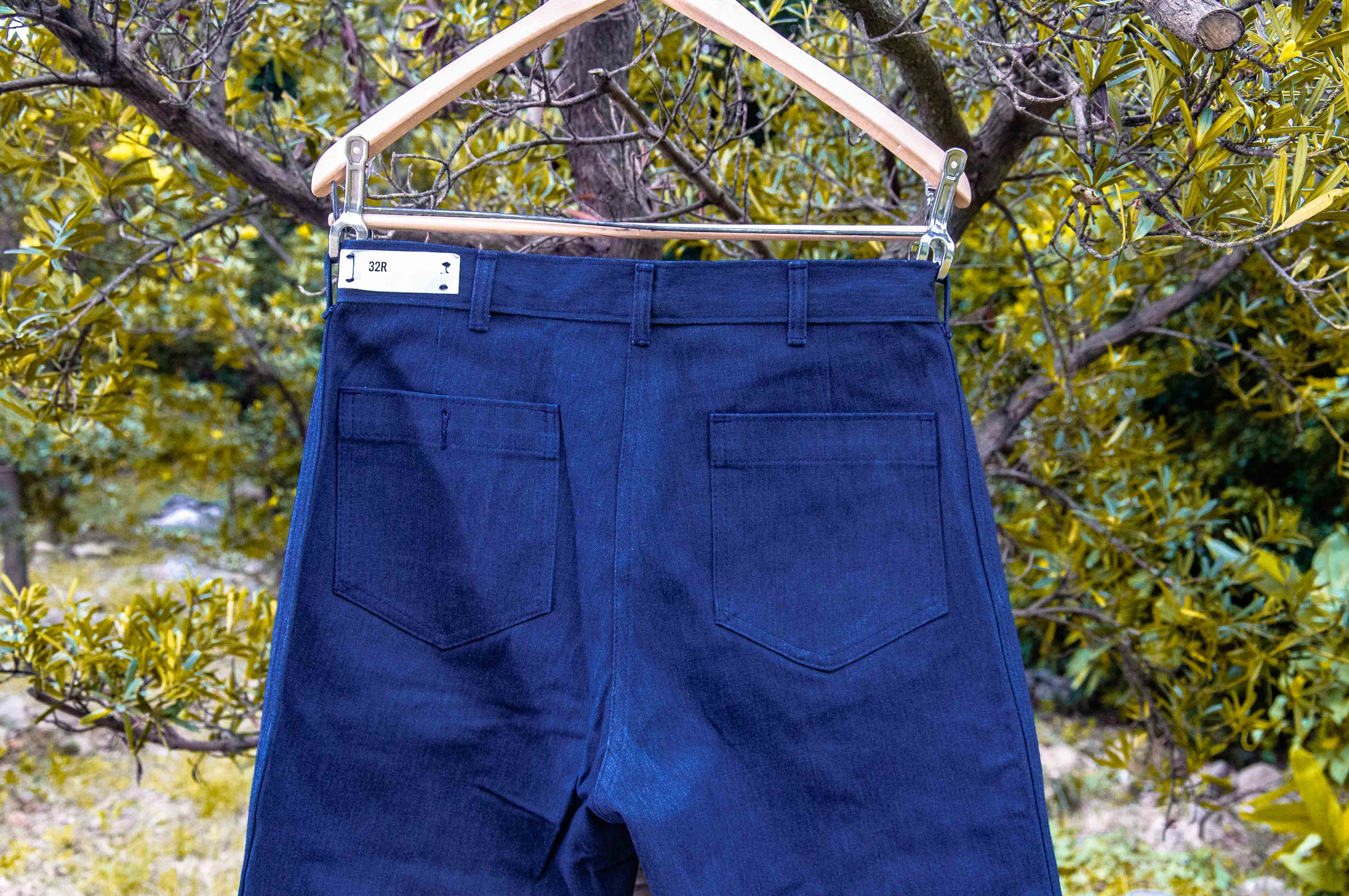 前方大腿處左右各一方形口袋及寬褲管設計都是此褲款非常經典的設計。漂亮的 Indigo 色澤在長時間的使用後便能養出自然溫潤的色落。拉鍊使用 Ideal 黃銅拉鍊,耐用好拉,而輕磅數的丹寧布料工作褲,即使在夏天工作時著用也不會感受到悶熱不適。