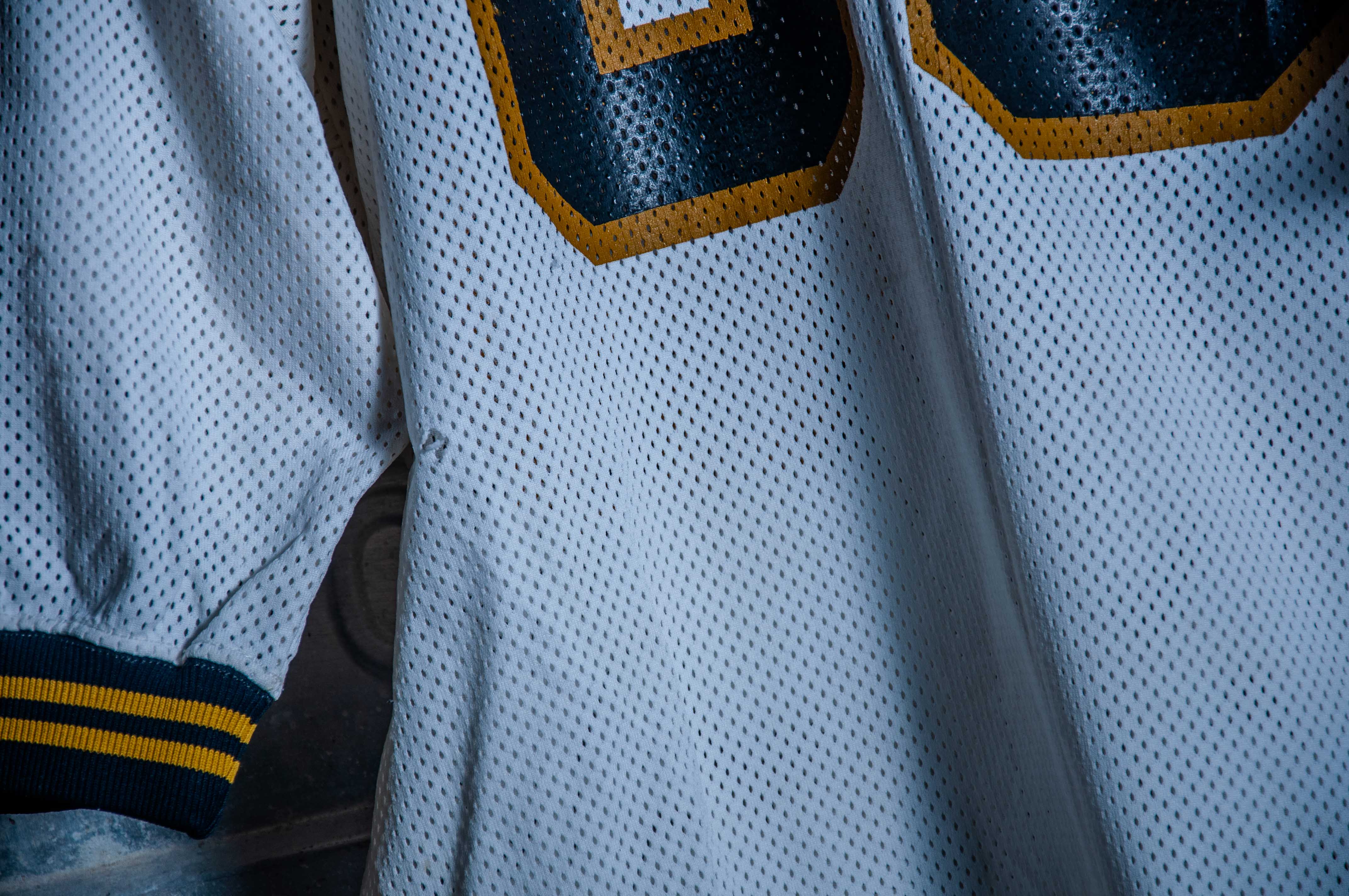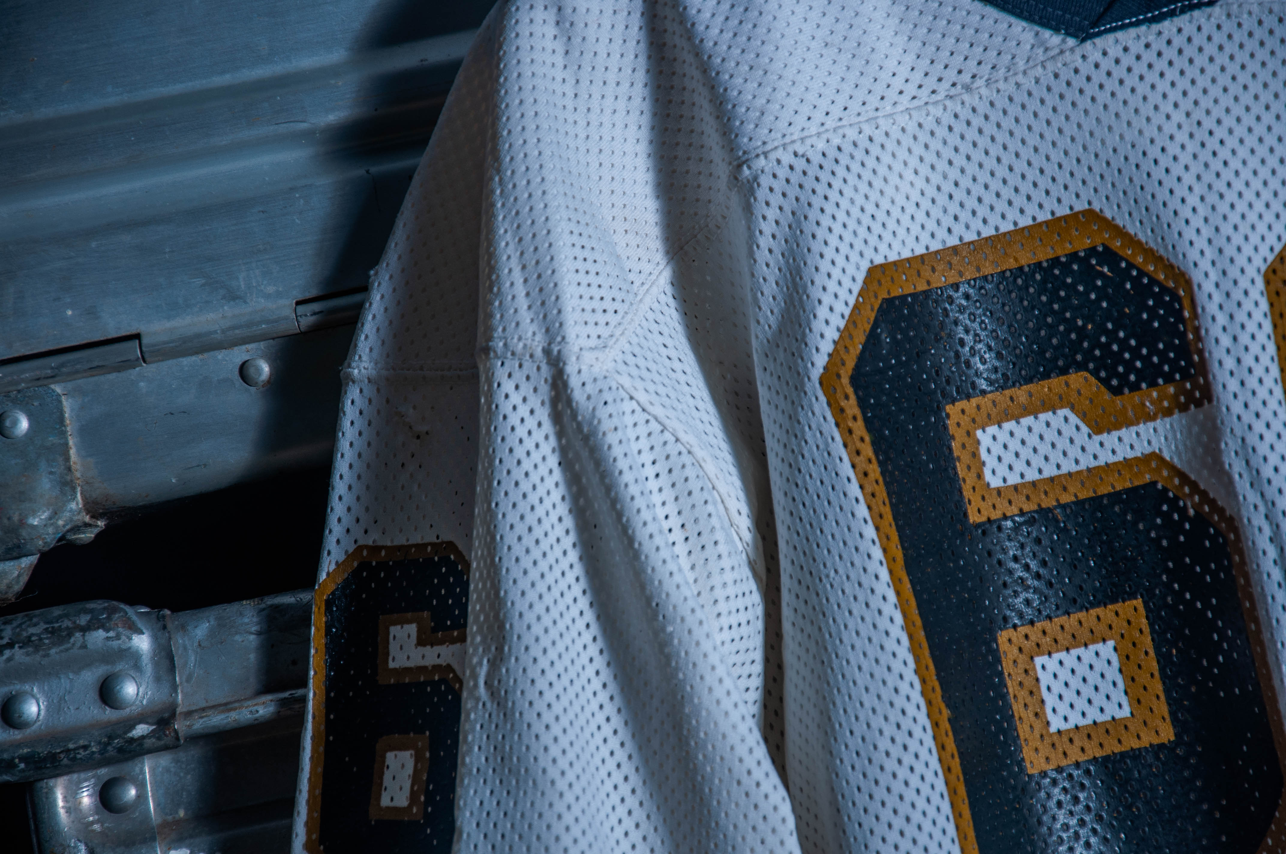 這件 70 年代 美國製 Russell Athletic 出產的美式足球衣,使用透氣排汗的網眼材質,非常適合目前濕熱的夏季。二手品項有些許使用過後輕微的污漬跟小破損,但不影響穿著。球衣號碼 66 號,非常個性,視覺強烈的一件球衣。