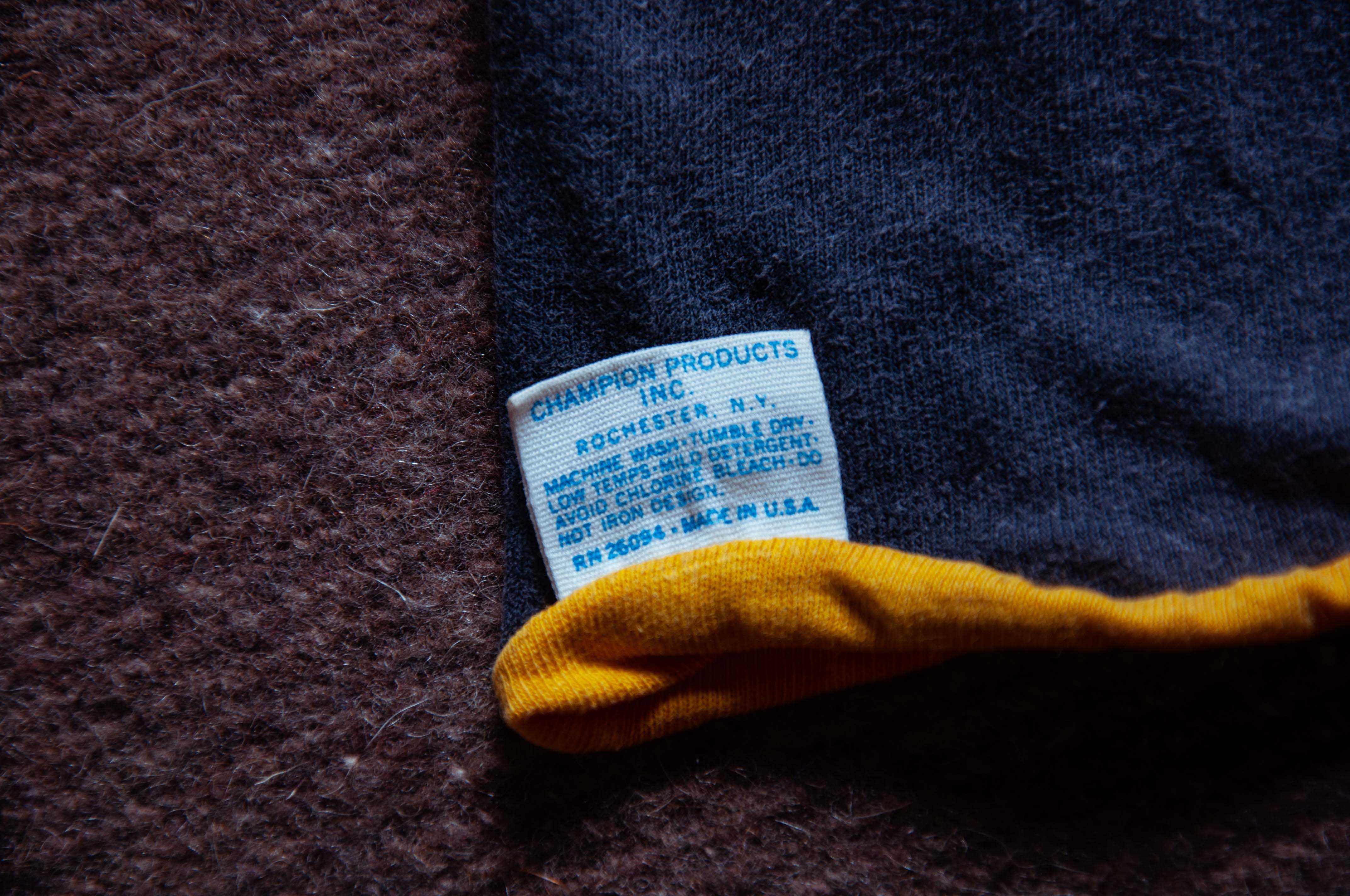 70 年代 Champion 出品 藍標 雙面T恤,原版美國製古着,圓筒剪裁,100 % Cotton 製作。早期 Champion 生產的雙面 T-Shirt 在古著玩家的眼裡一直都是有非常好的收藏性。